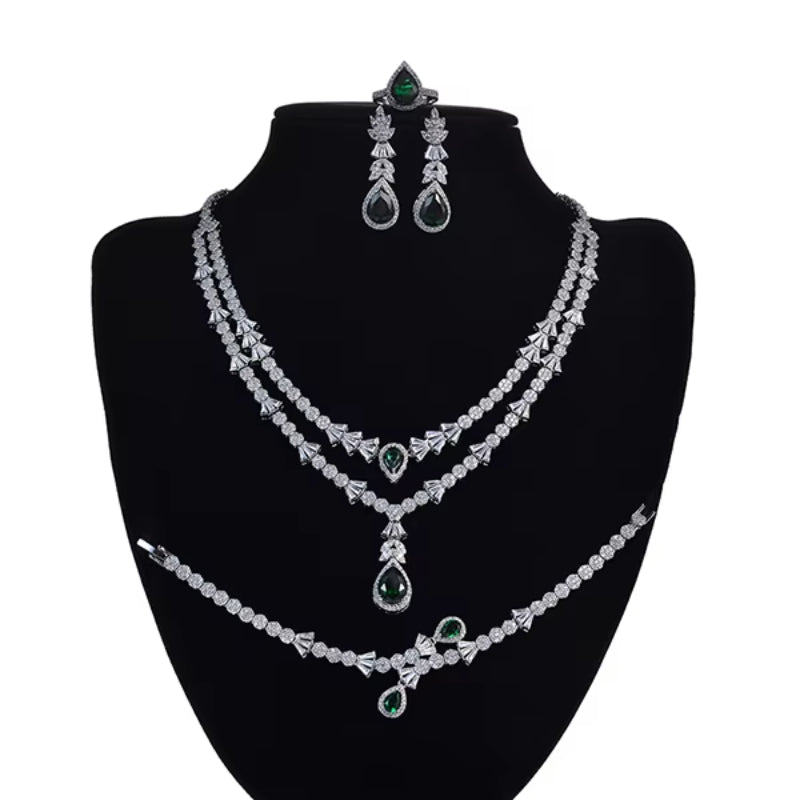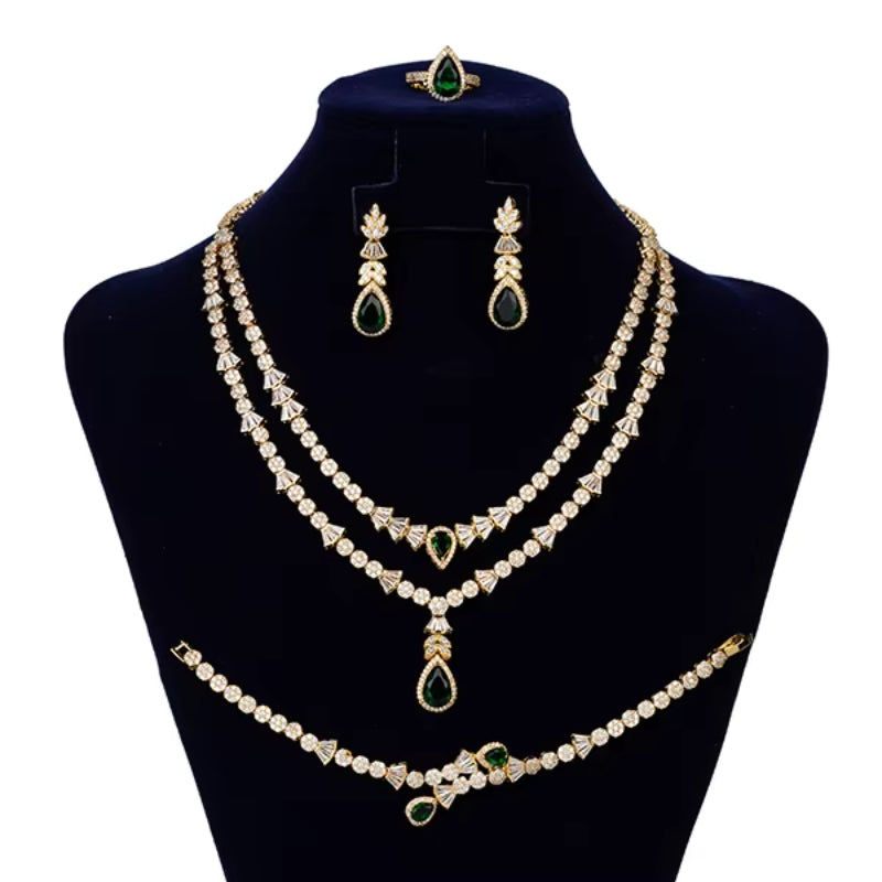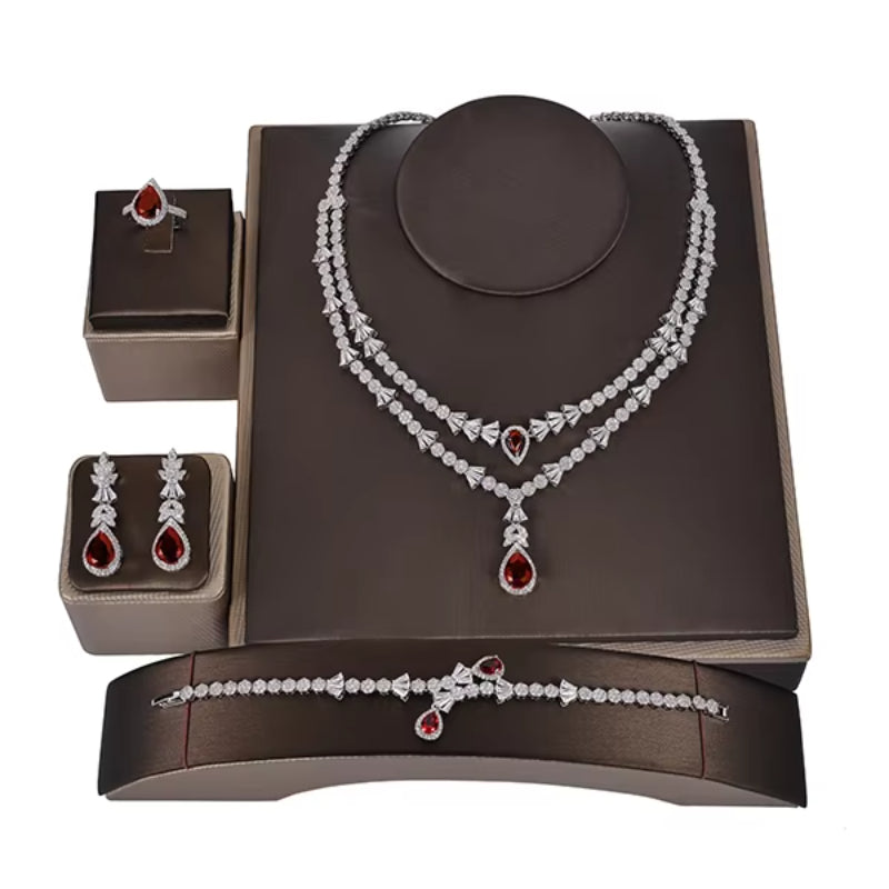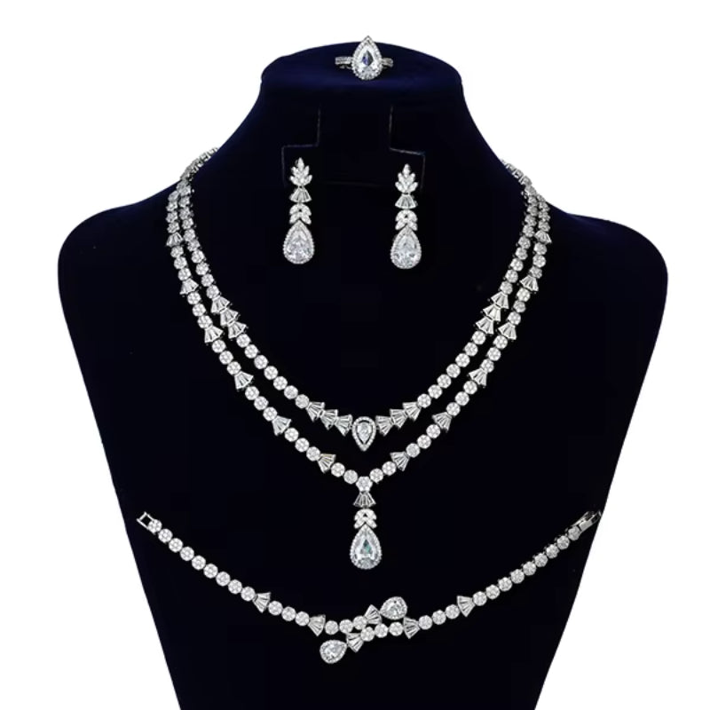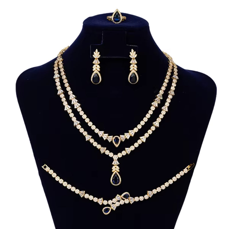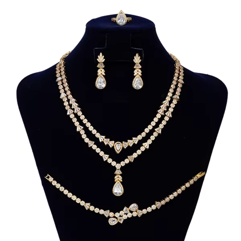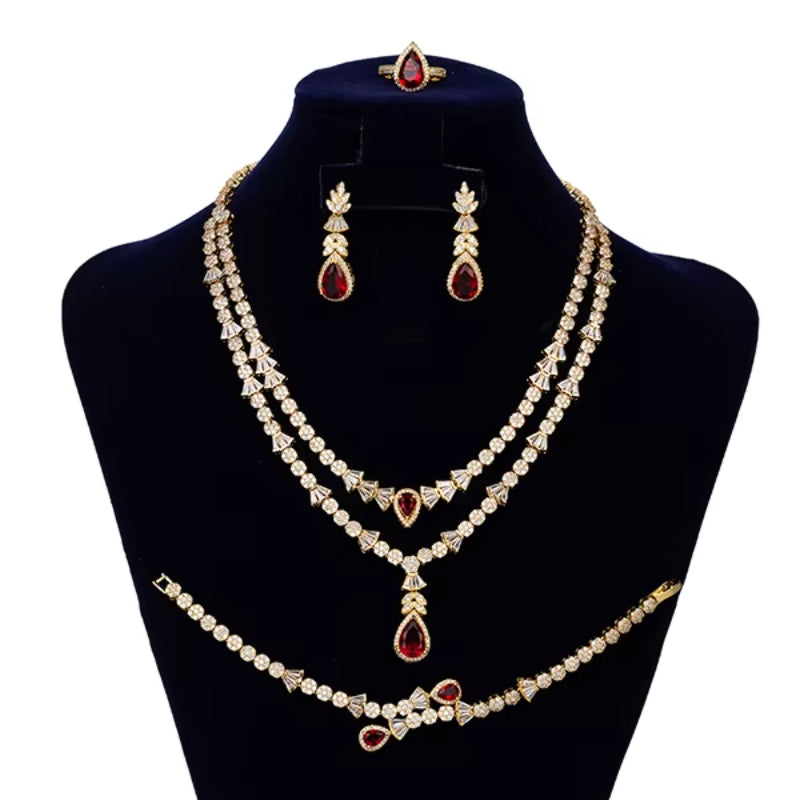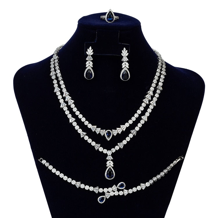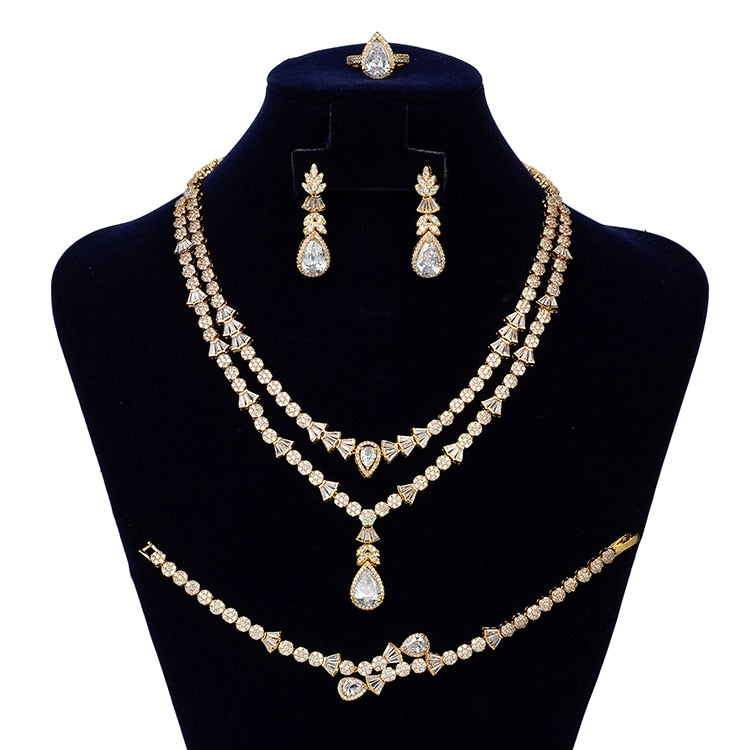 Jewelry Set HADIYANA Fashion Gorgeous Necklace Earrings Ring Bracelet Set For Women Party Gift Wedding
