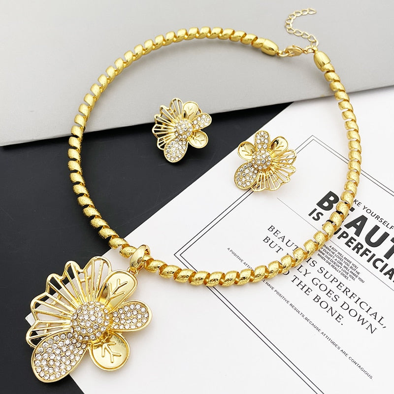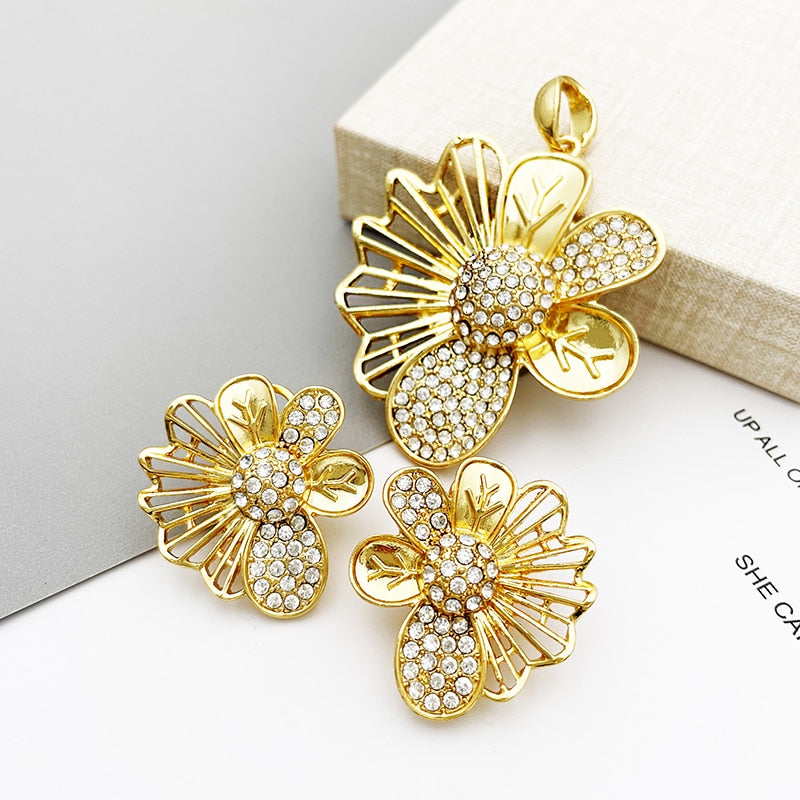Afraic Jewelry -Fashion Jewelry For Women Necklace Earring Set Adjustable Large Pendant Match Metal Imitation Pearl