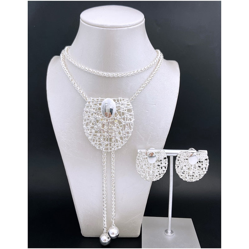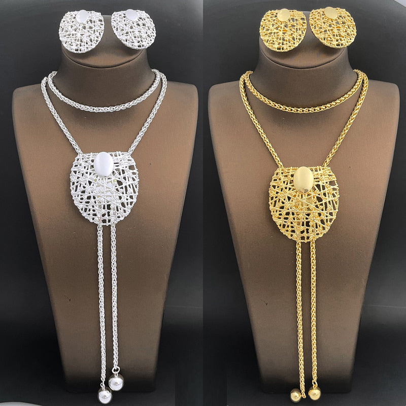 Fashion Jewelry For Women Necklace Earring Sets Adjustable Long Chain Big Pendant