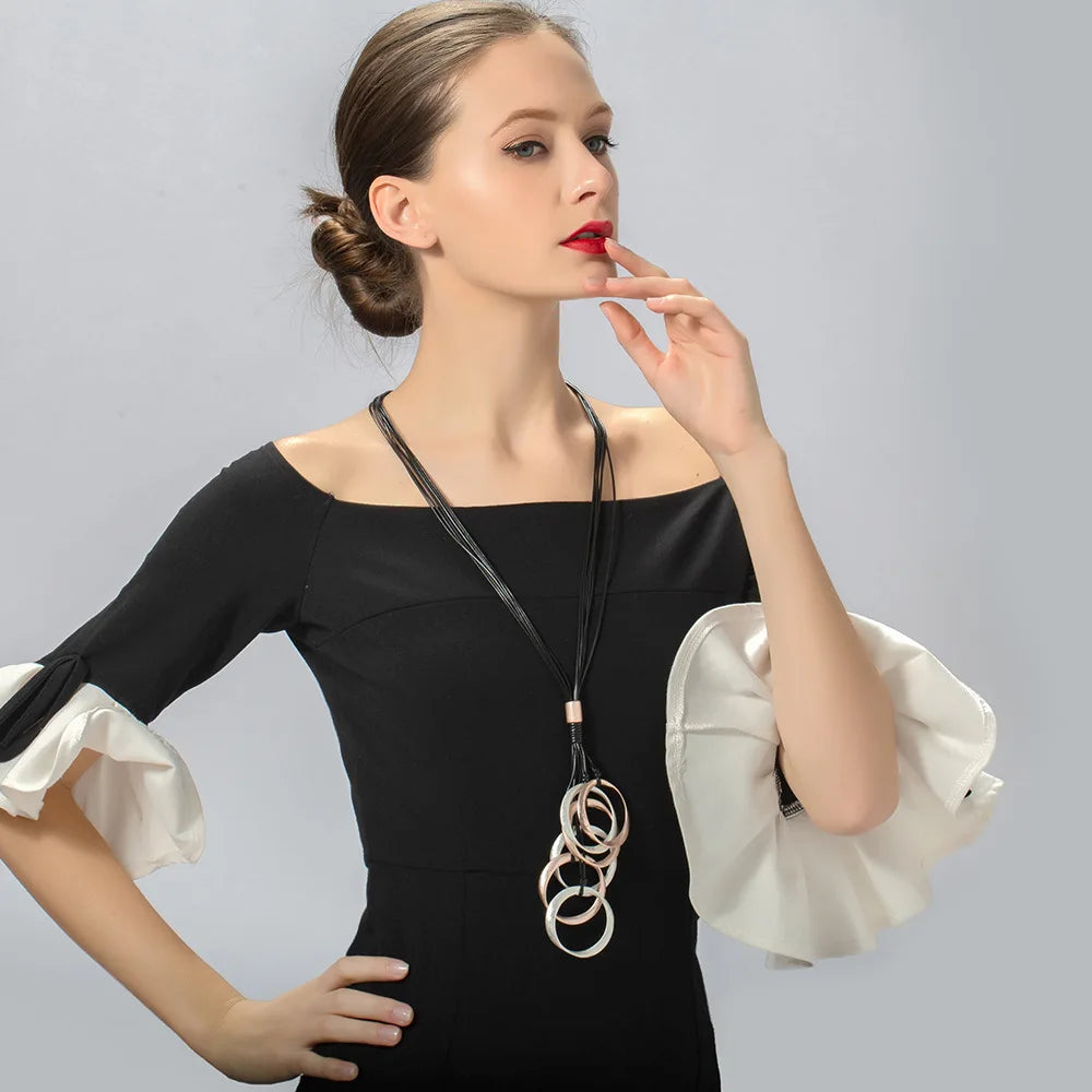 Fashion Jewelry Long Necklace for Women Chokers Circles Pendants Goth Chains