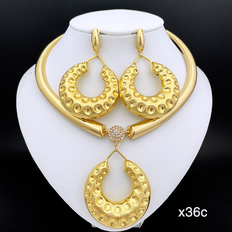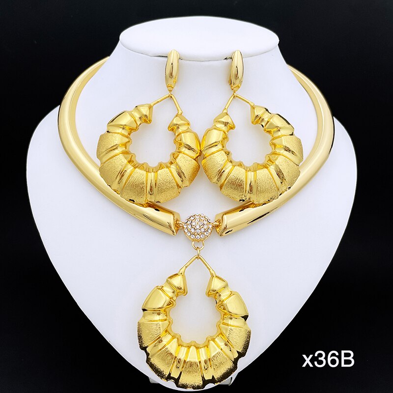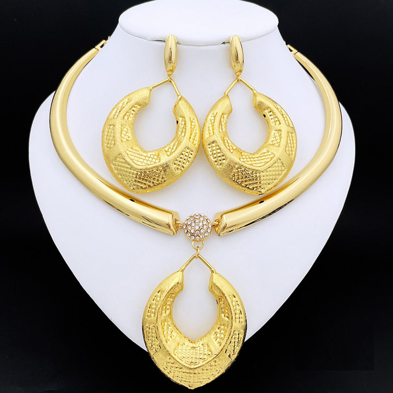 Dubai Women Necklace Earrings Set 24K Gold Plated African Fashion Jewelry Nigeria Bride Jewelry Wedding Party Gifts