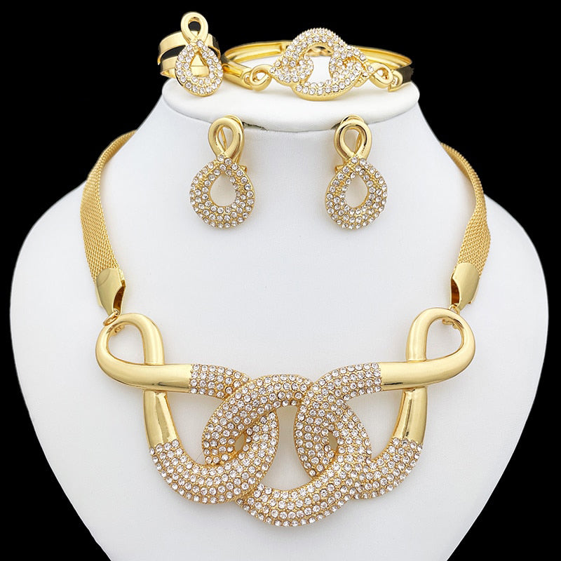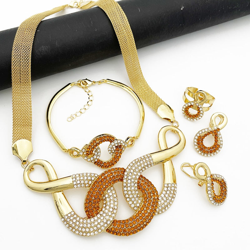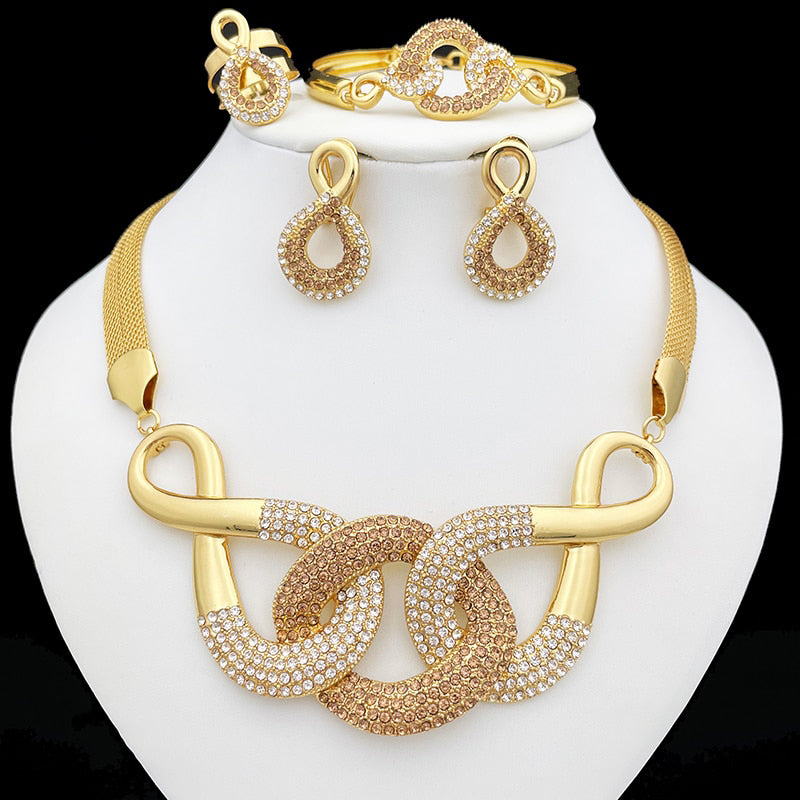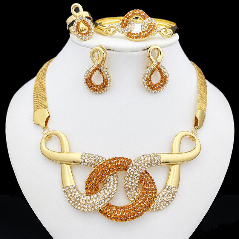 Afraic Jewelry-24k Fashion Jewelry Set Gold Color Necklace Earrings Sets For Women