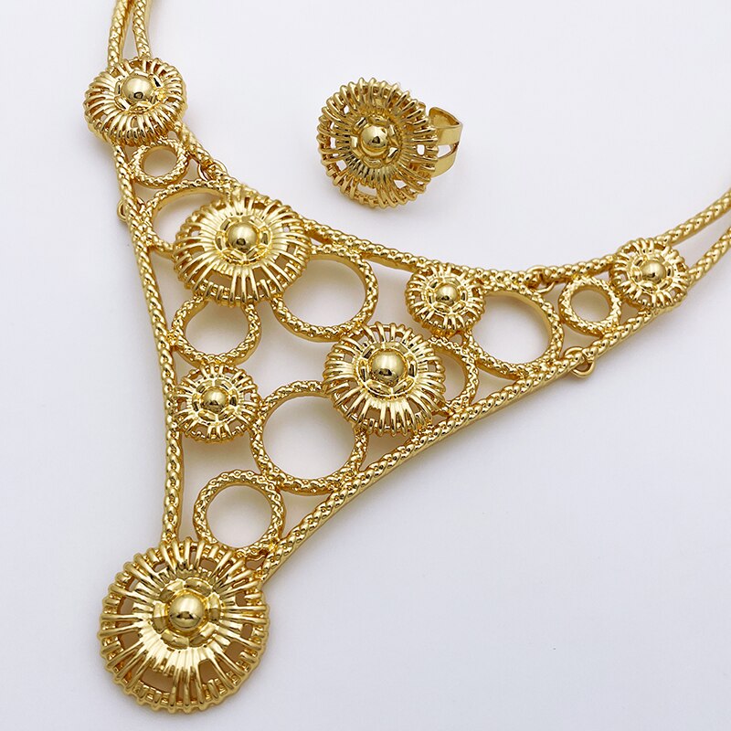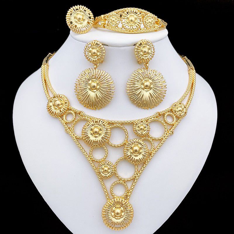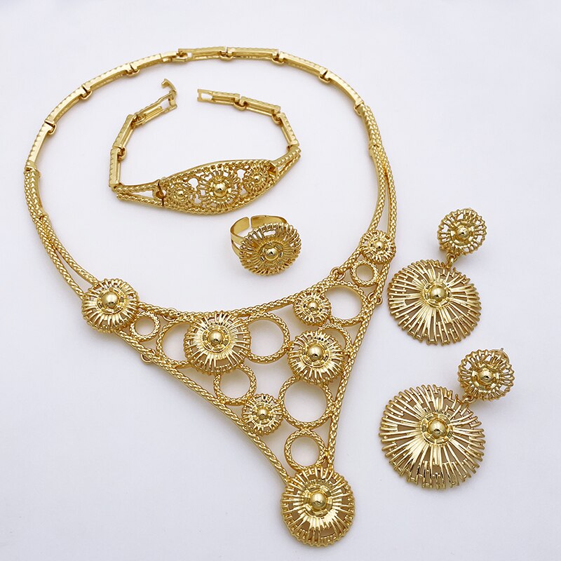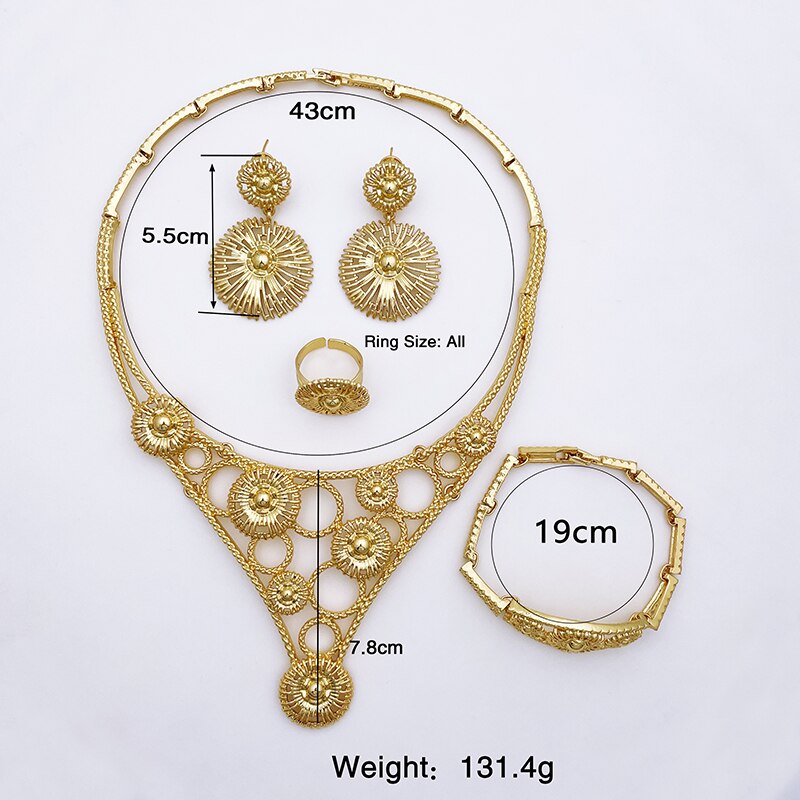 Gold Plated Brazil Jewelry Sets Women Necklaces Large Bracelet Wedding Banquet Party Jewelry