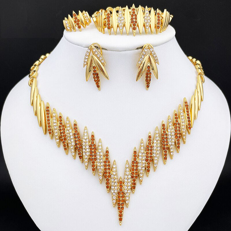 Fashion Jewelry Sets Gold Color Necklace And Earrings For Women Four Pieces Jewelry Set