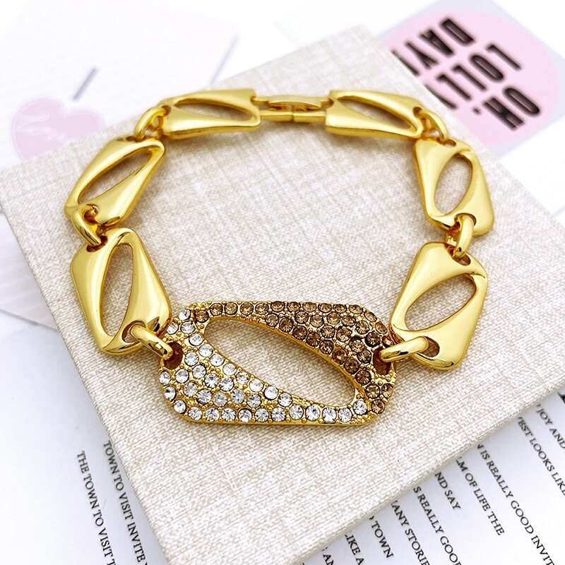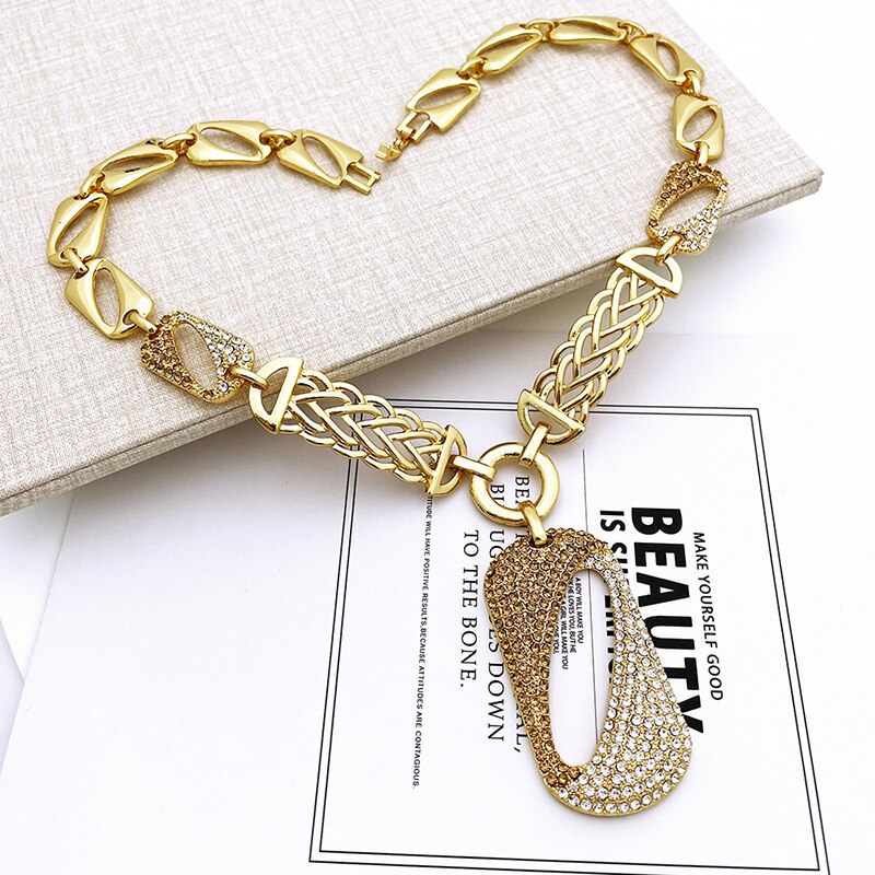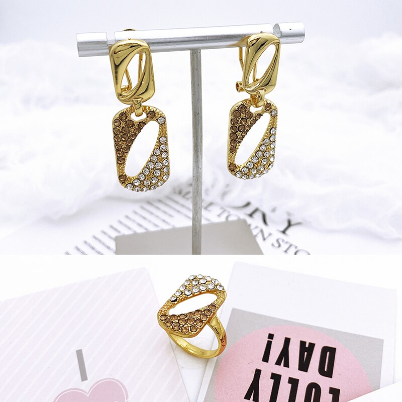 keyword: New Women Jewelry Sets Dubai Gold Necklace Round Earrings Adjustable Bracelet Ring