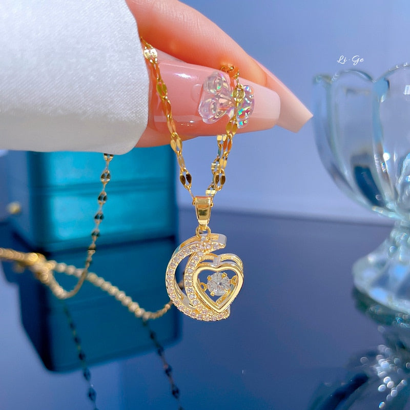 Men's Watches-Stainless Steel Fashion Light Luxury Temperament Moon Heart Pendant Necklace for Women Wedding Choker Necklaces Jewelry