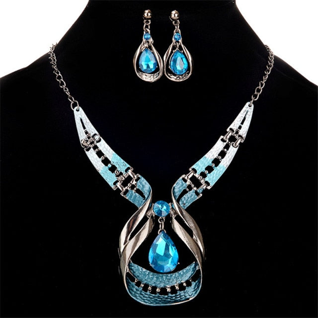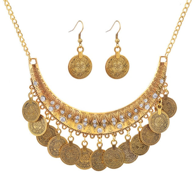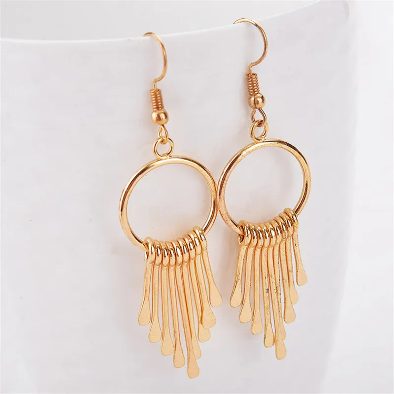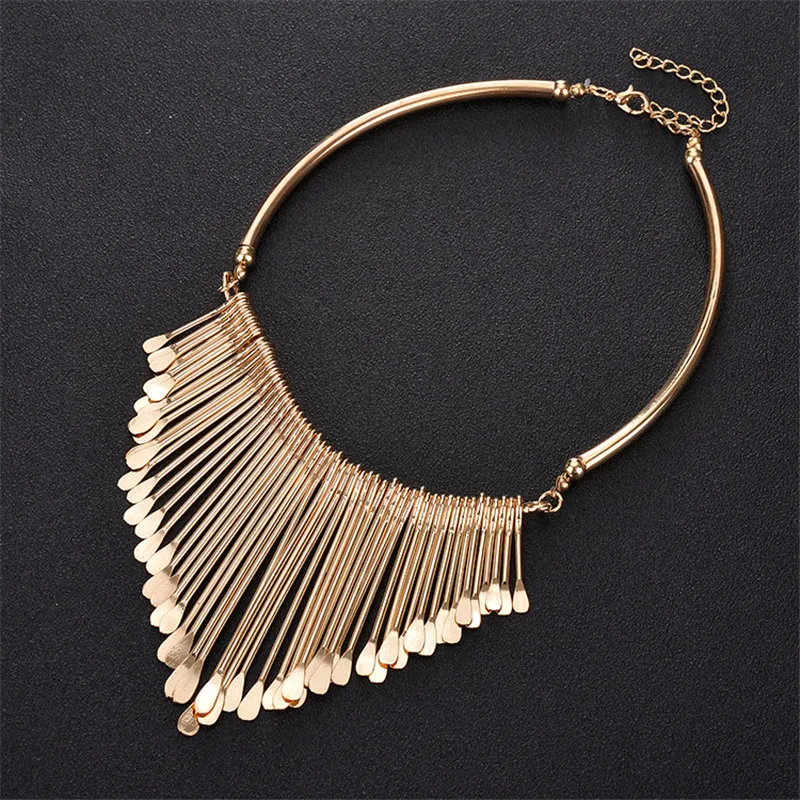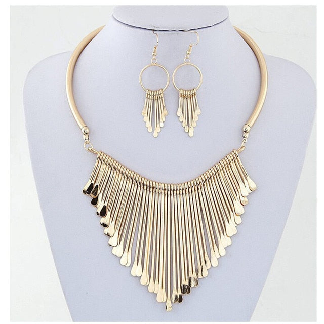 Ahmed Jewelry Geometry Fashion Metal Tassel Jewelry Set Necklace Earring For Woman New Boho Maxi Statement Collar Necklace HOT