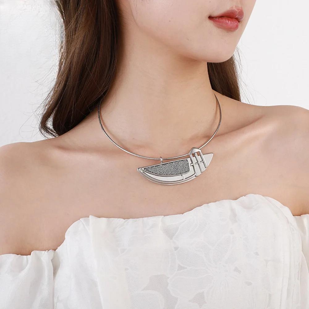 Fashion Neck Chokers Trendy Necklace for Women Collar Geometric Silver Color Suspension Pendant Goth Jewelry Statement Accessory