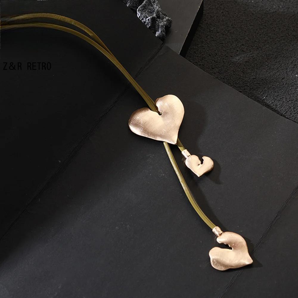 Handmade Korean Fashion Necklace for Women Gothic Long Chains Heart Jewelry Suspension Pendants Accessories Valentines Day