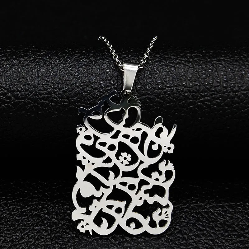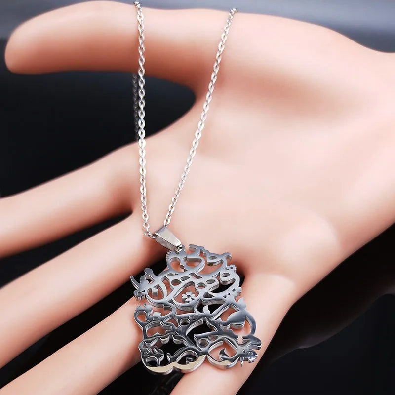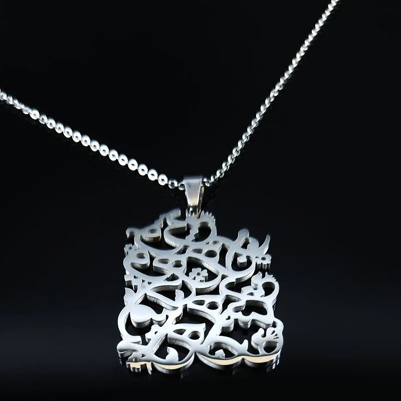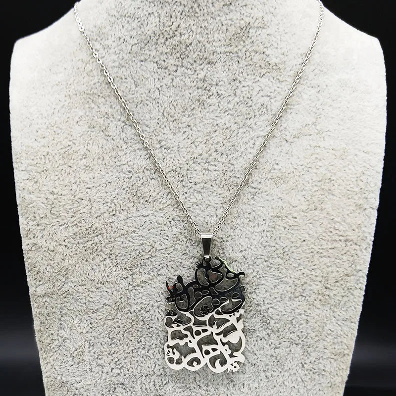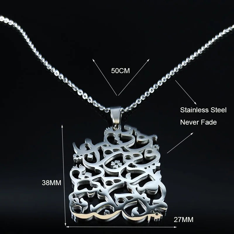 Fashion Persian Persian Poetry Stainless Steel Statement Necklace Women Silver Color Necklace