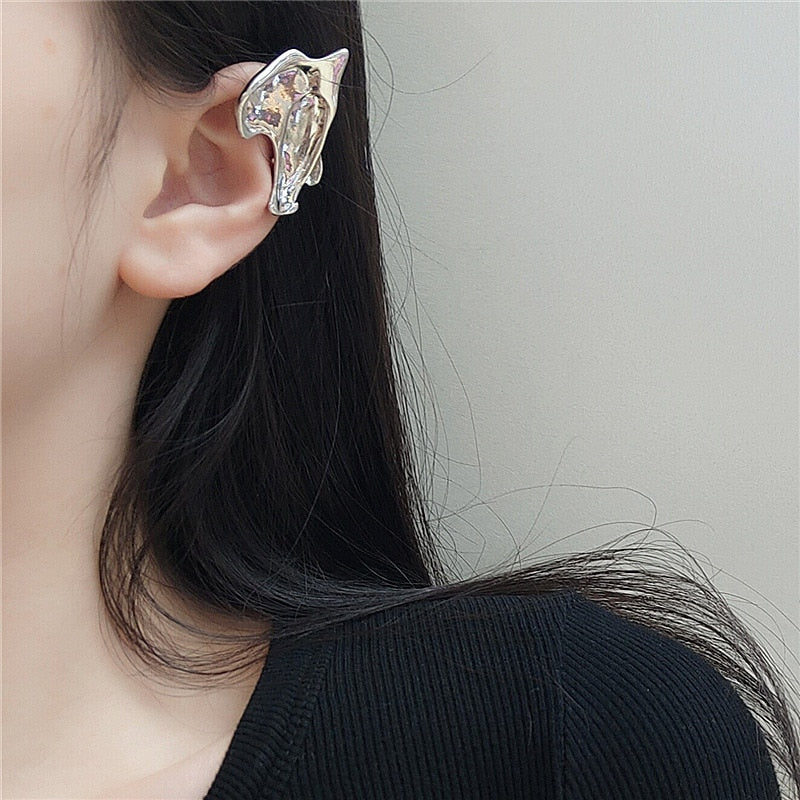 Fashion Earrings-Fashion Punk Fairy Clip Earrings For Women Goth Irregular Metal Ear Cuffs Unusual Statement Design No Piercing Korean Earrings