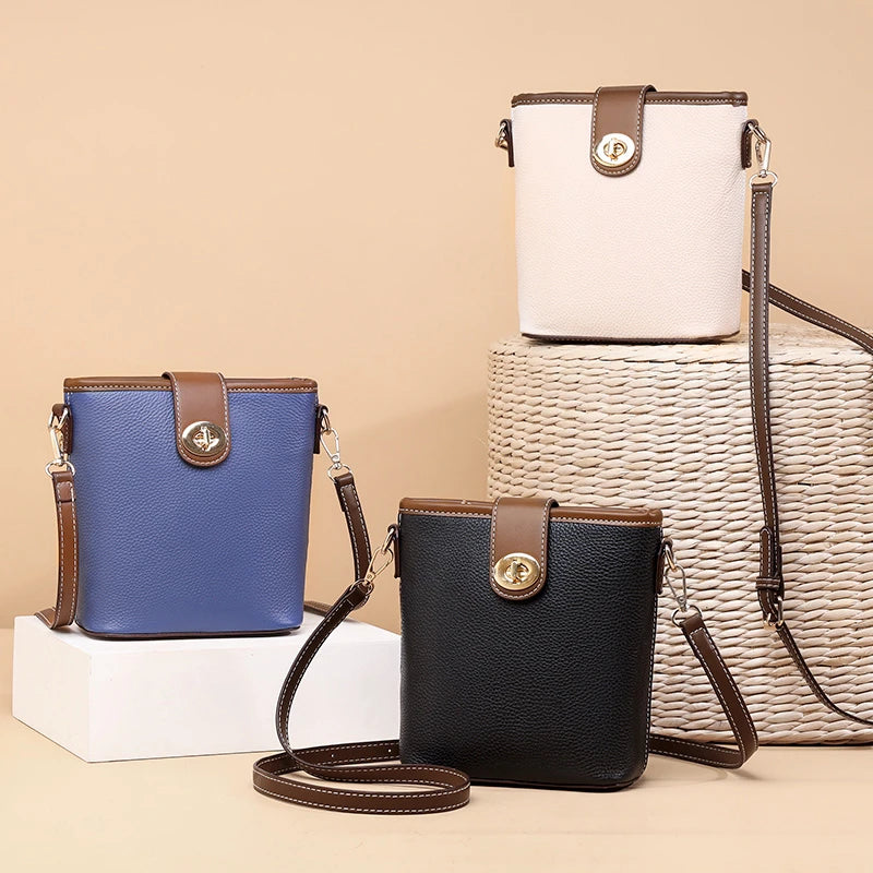 Fashion Real Cowhide Girls Purse Phone Pouch Genuine Leather Shoulder Bags Woman Minimalist Solid Color Mini Crossbody Bag