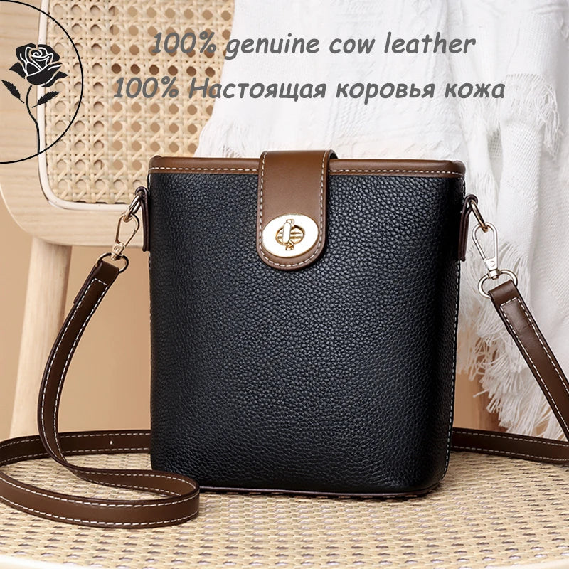 Fashion Real Cowhide Girls Purse Phone Pouch Genuine Leather Shoulder Bags Woman