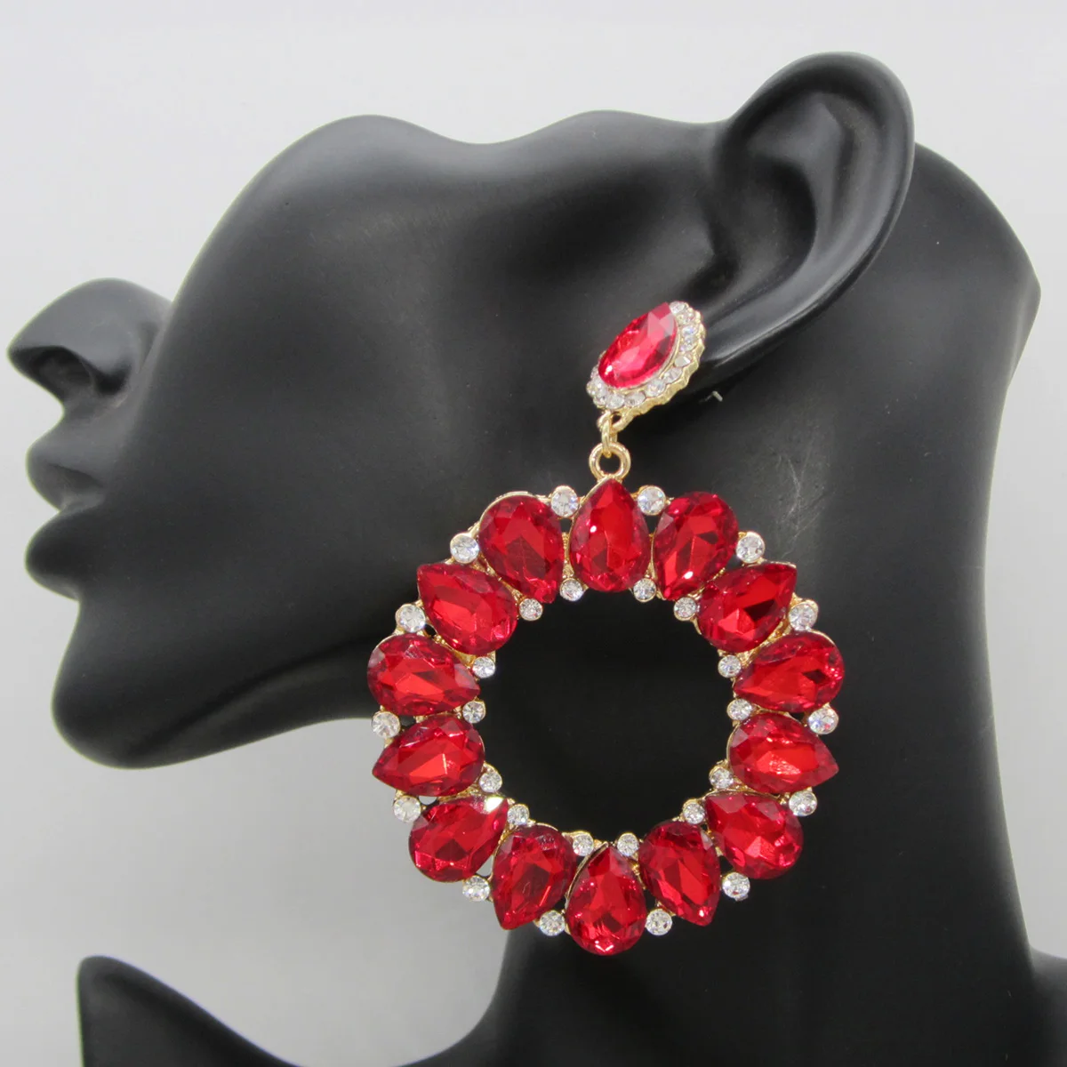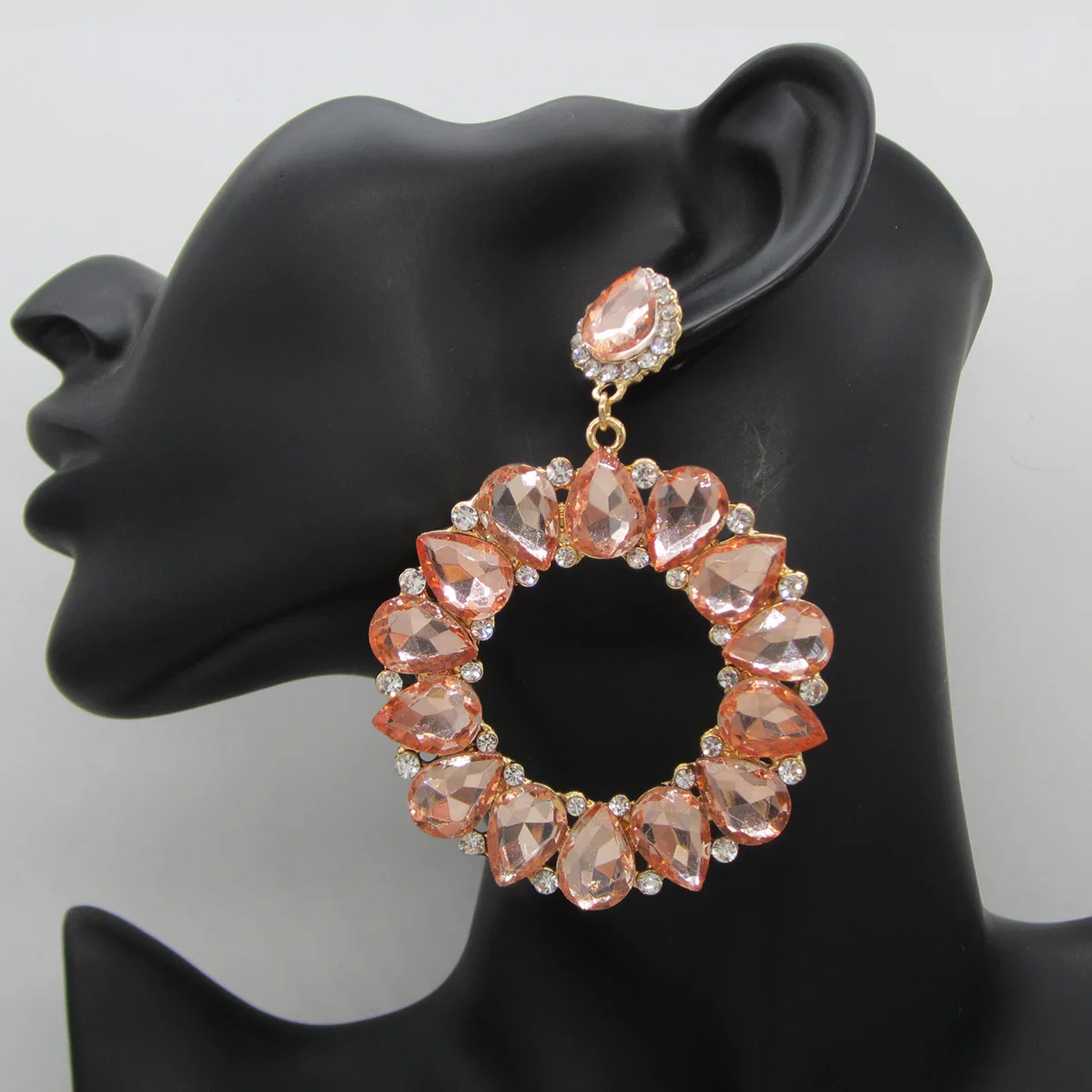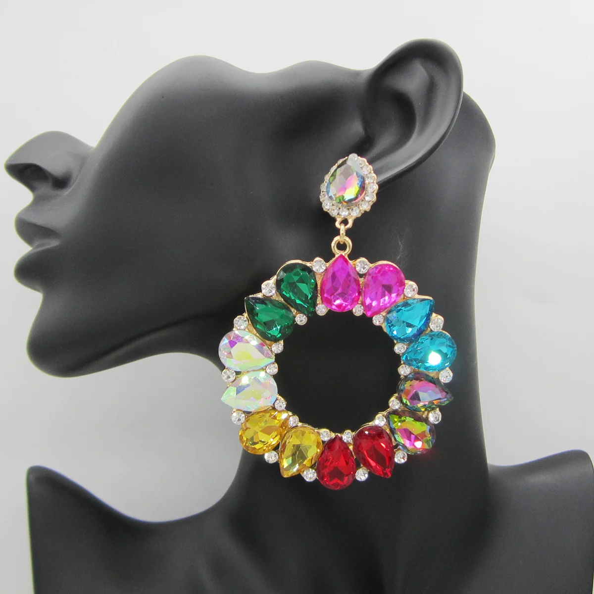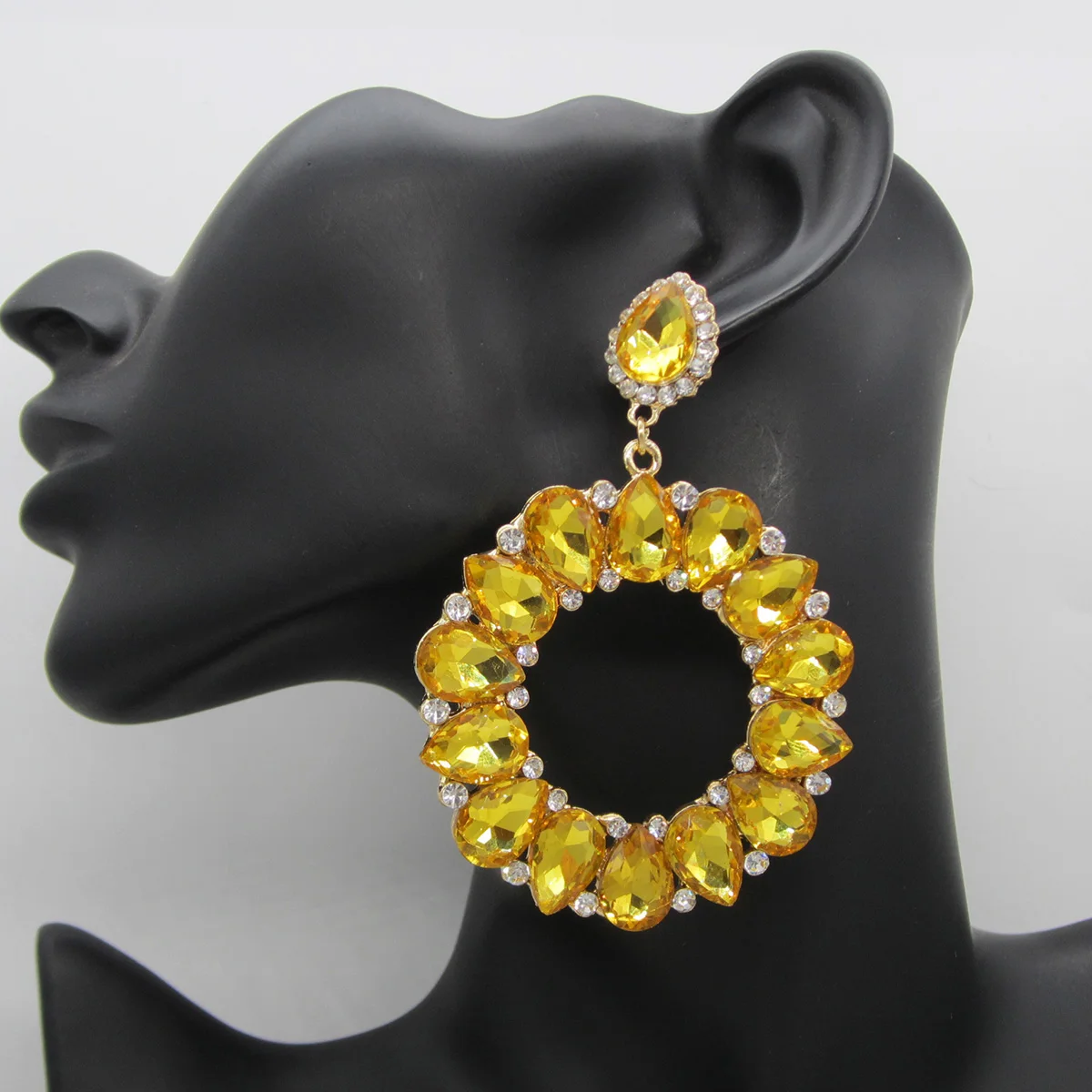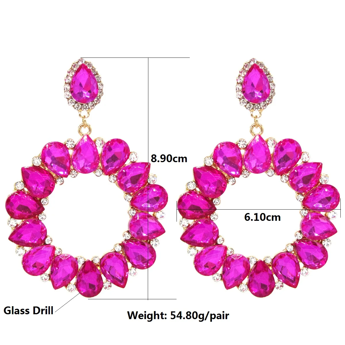 Rhinestone Jewelry-Fashion Round Large Dangle Earrings Luxury Brand Design Sparkly Glass Crystal Charm Female Pendientes Party ACCESSORI JEWELRI