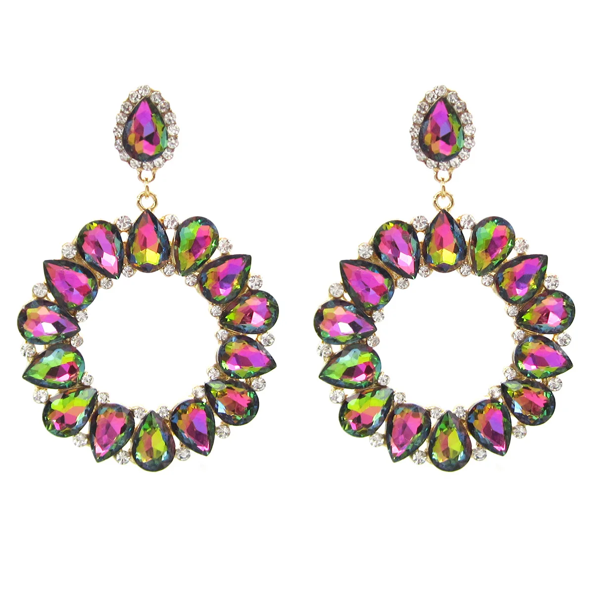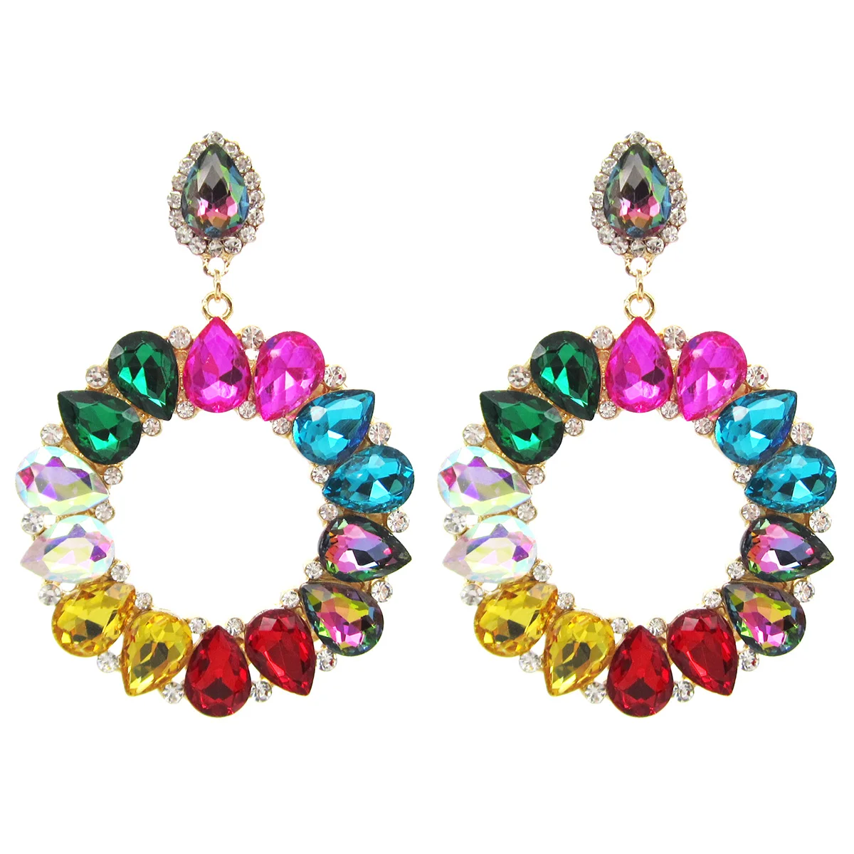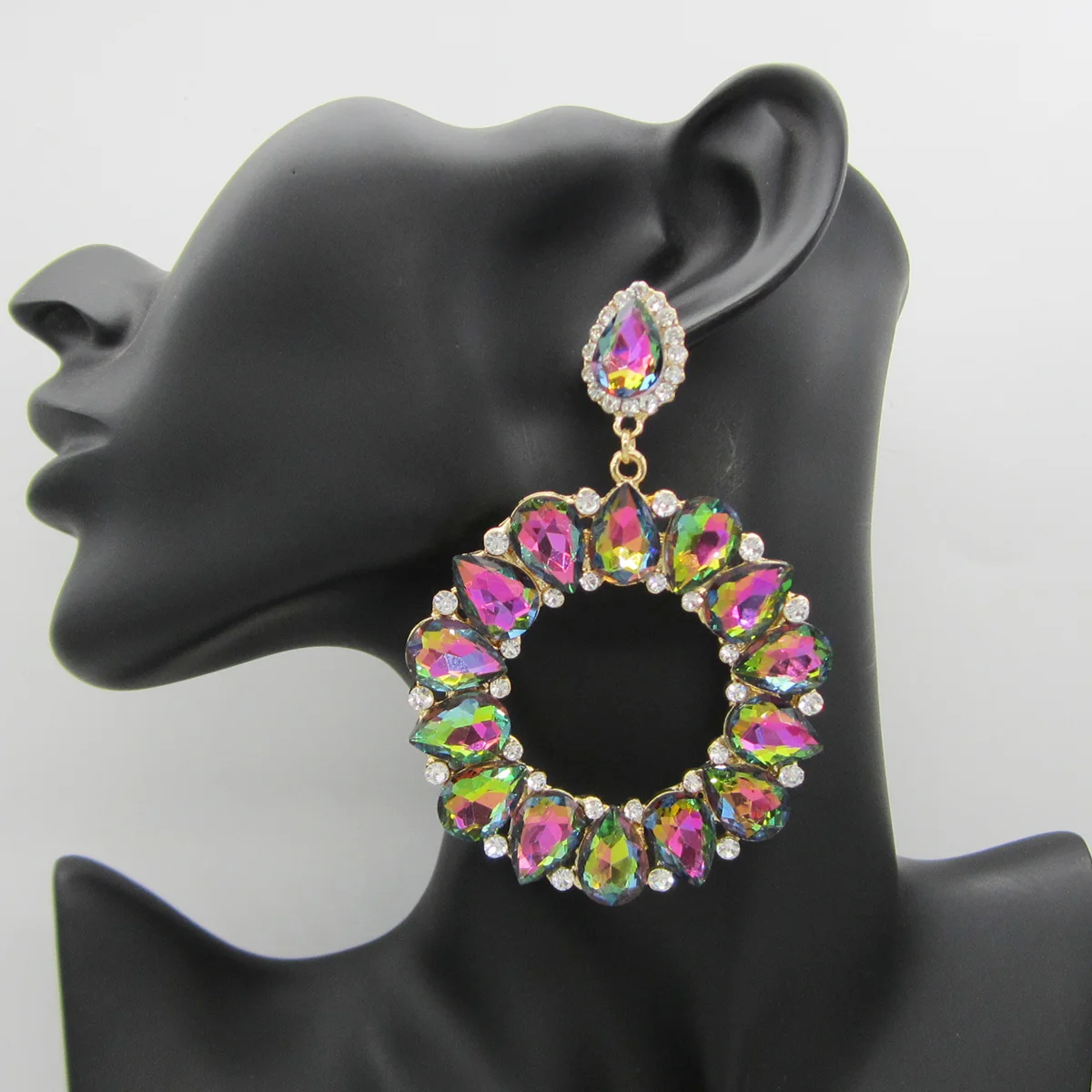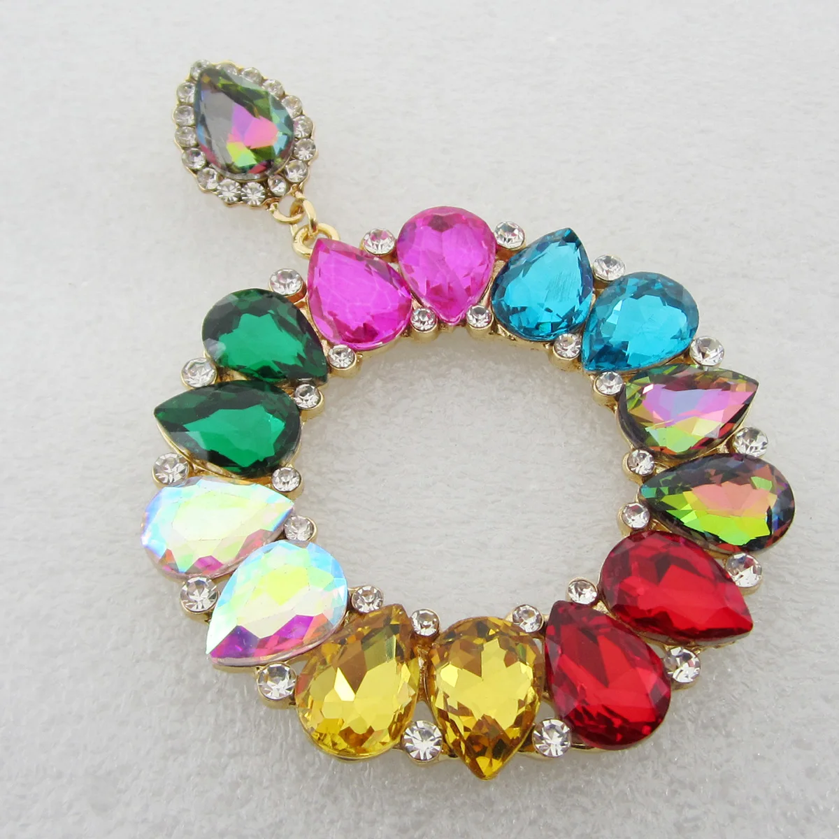 Rhinestone Jewelry-Fashion Round Large Dangle Earrings Luxury Brand Design Sparkly Glass Crystal Charm Female Pendientes Party ACCESSORI JEWELRI
