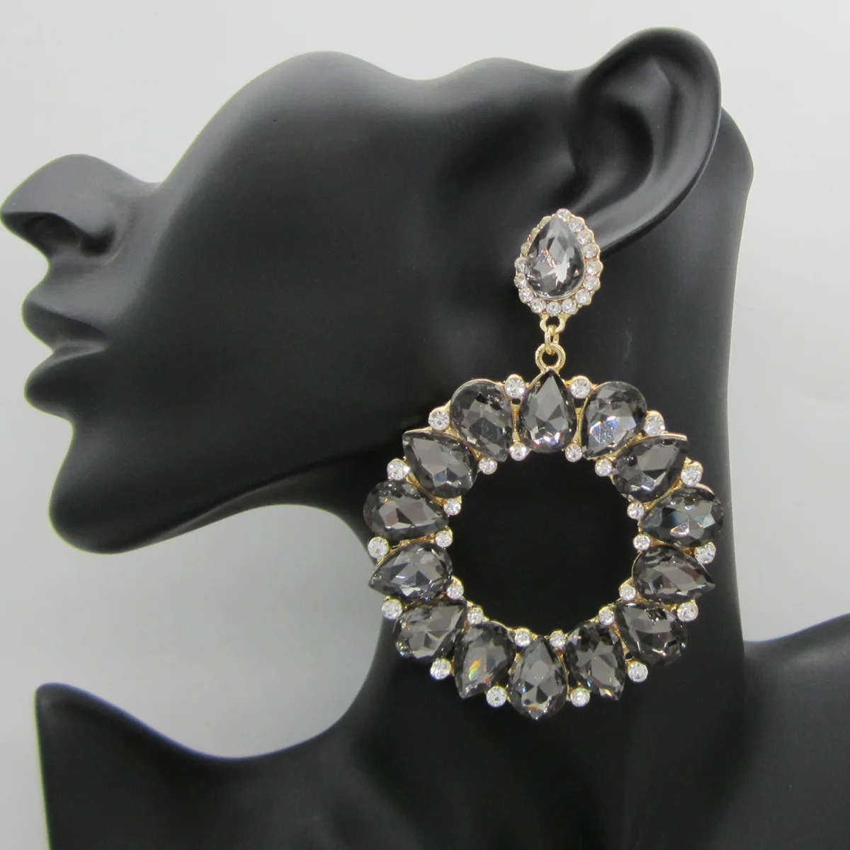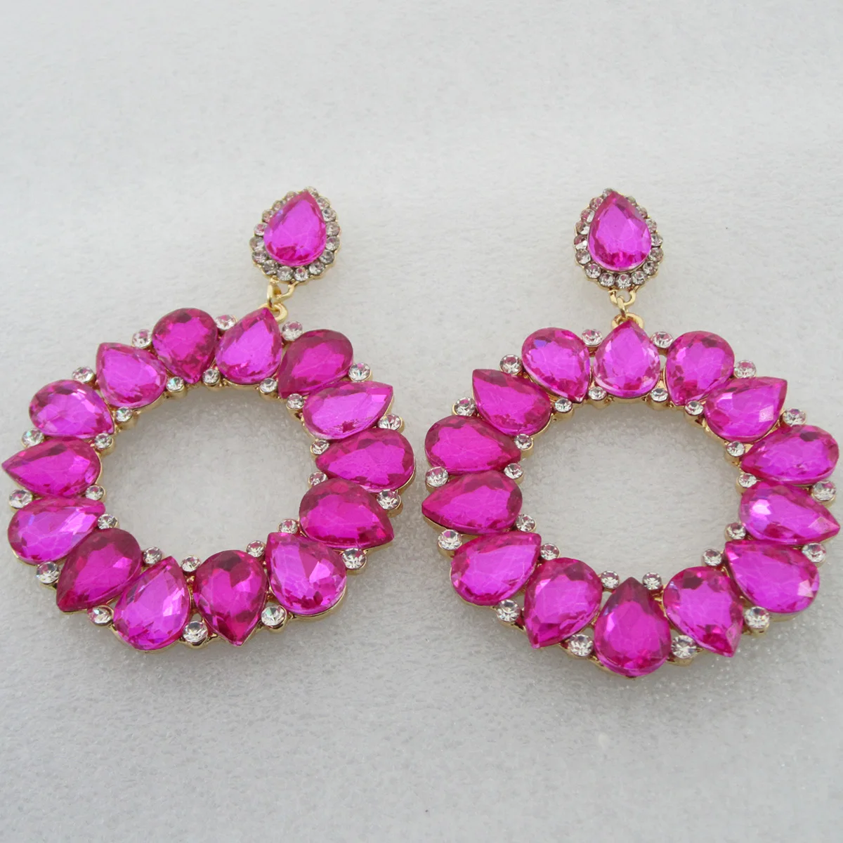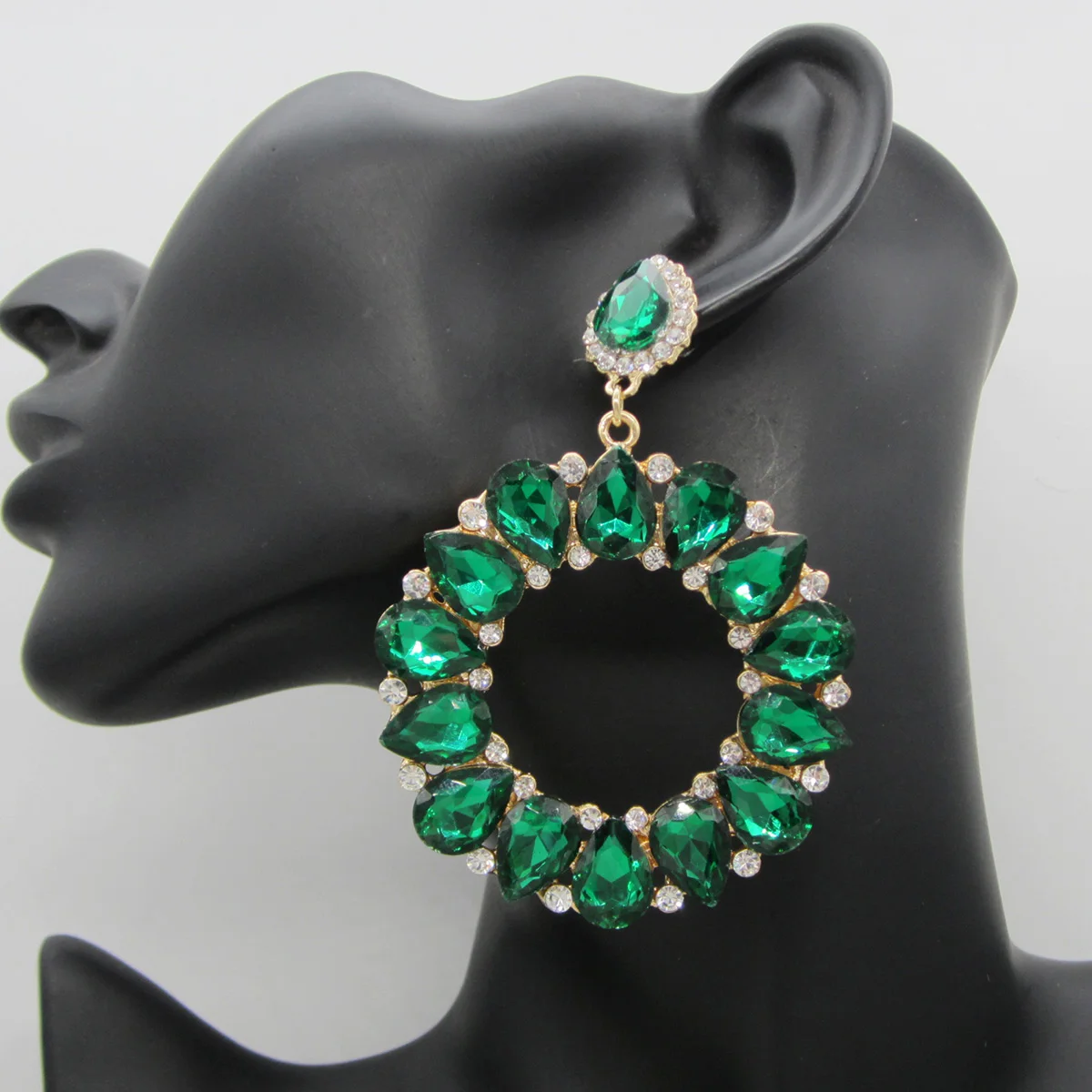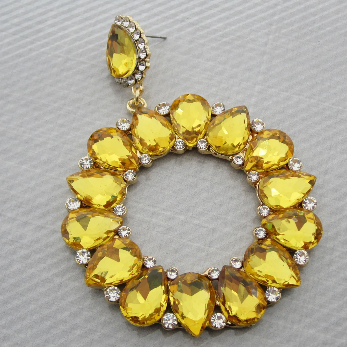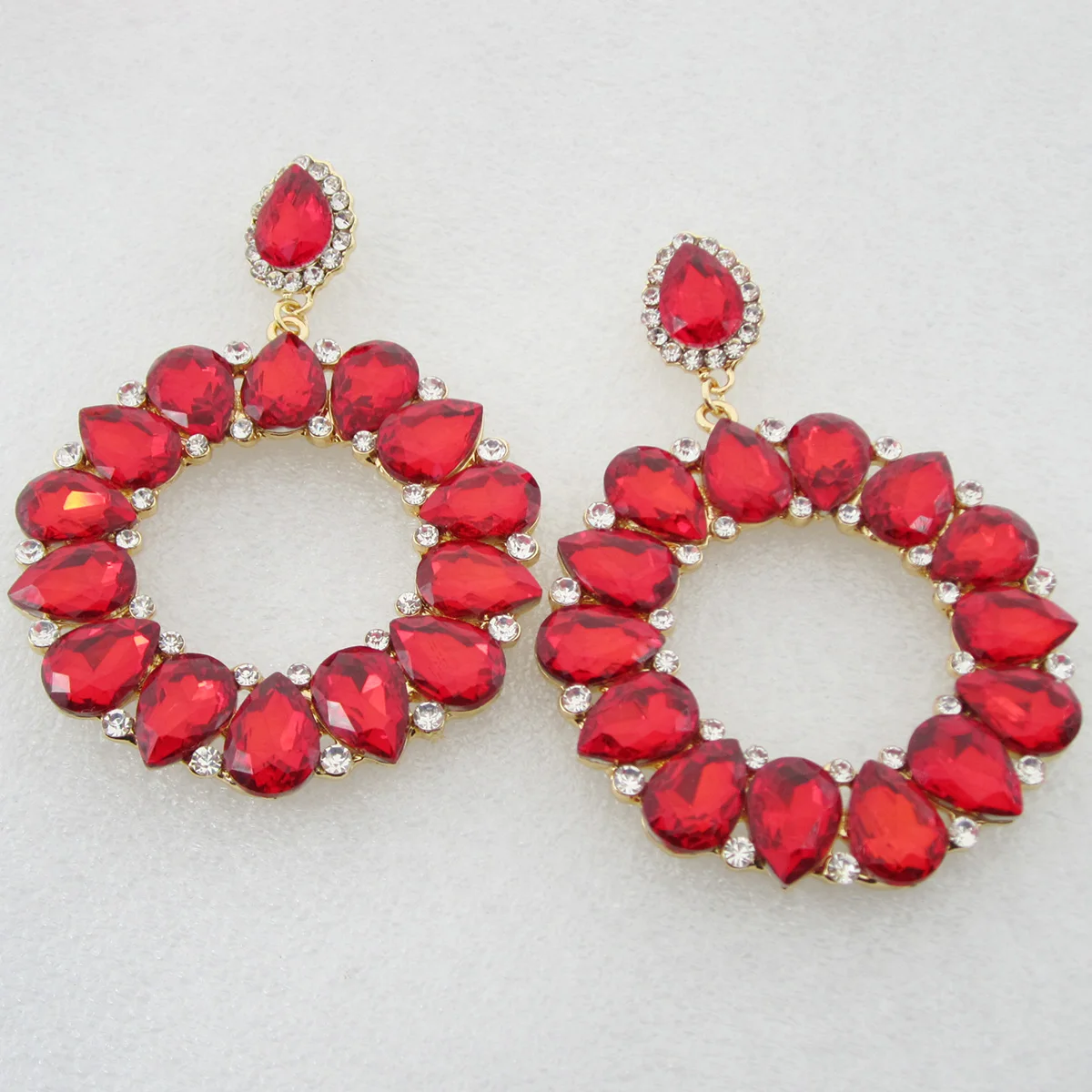 Rhinestone Jewelry-Fashion Round Large Dangle Earrings Luxury Brand Design Sparkly Glass Crystal Charm Female Pendientes Party ACCESSORI JEWELRI