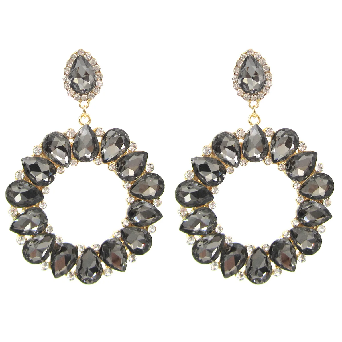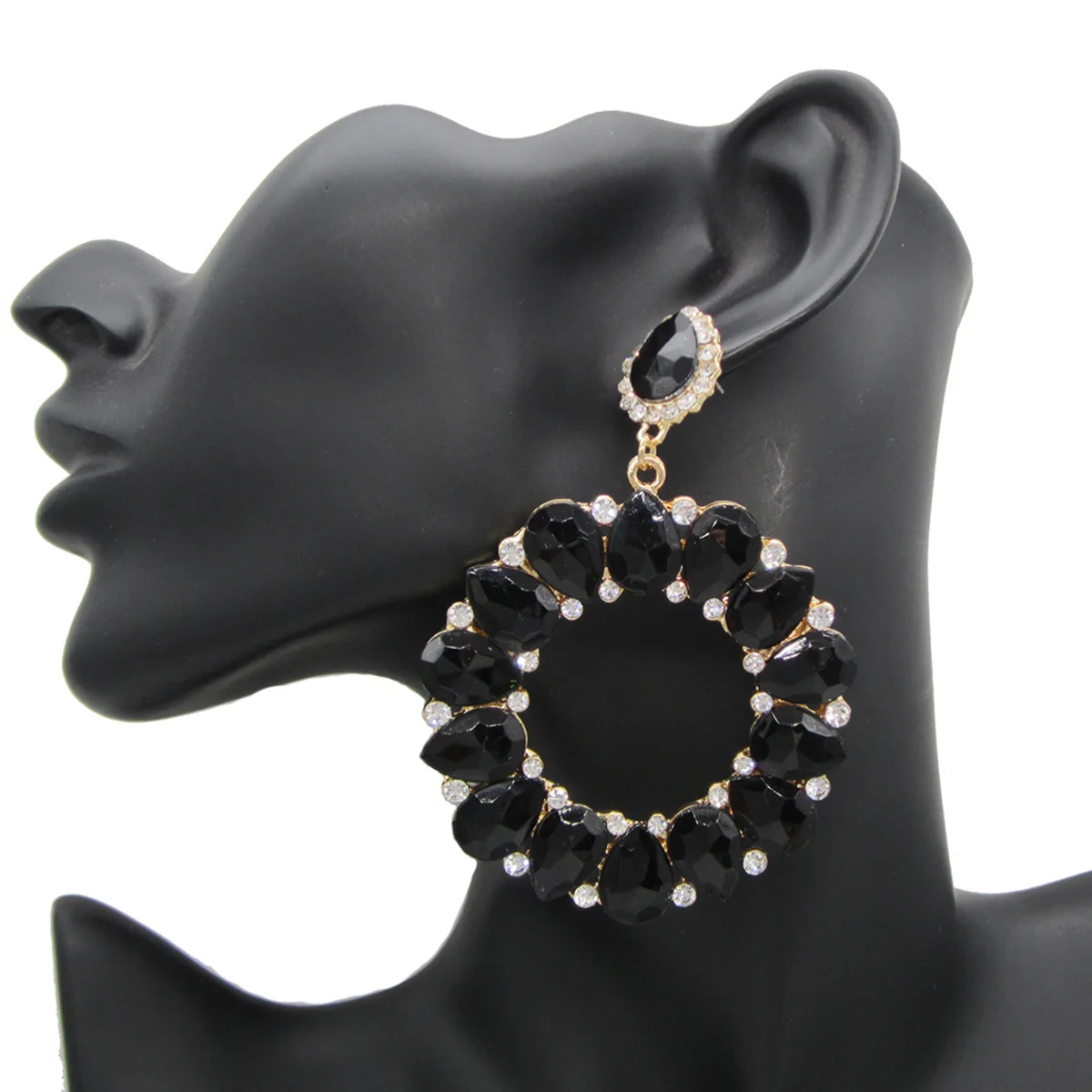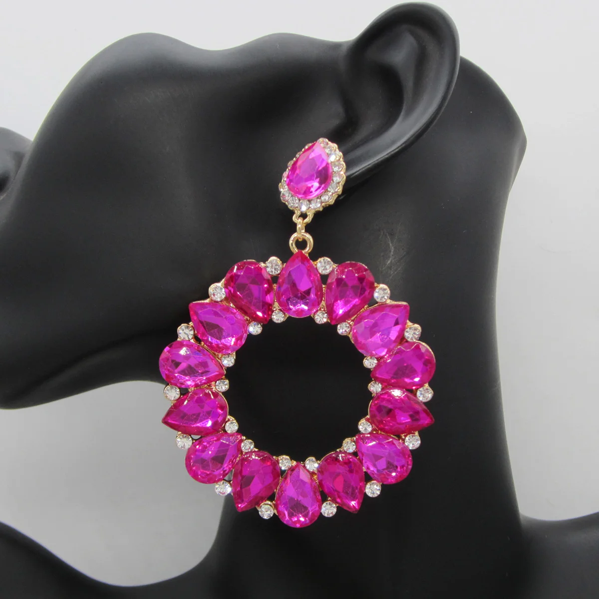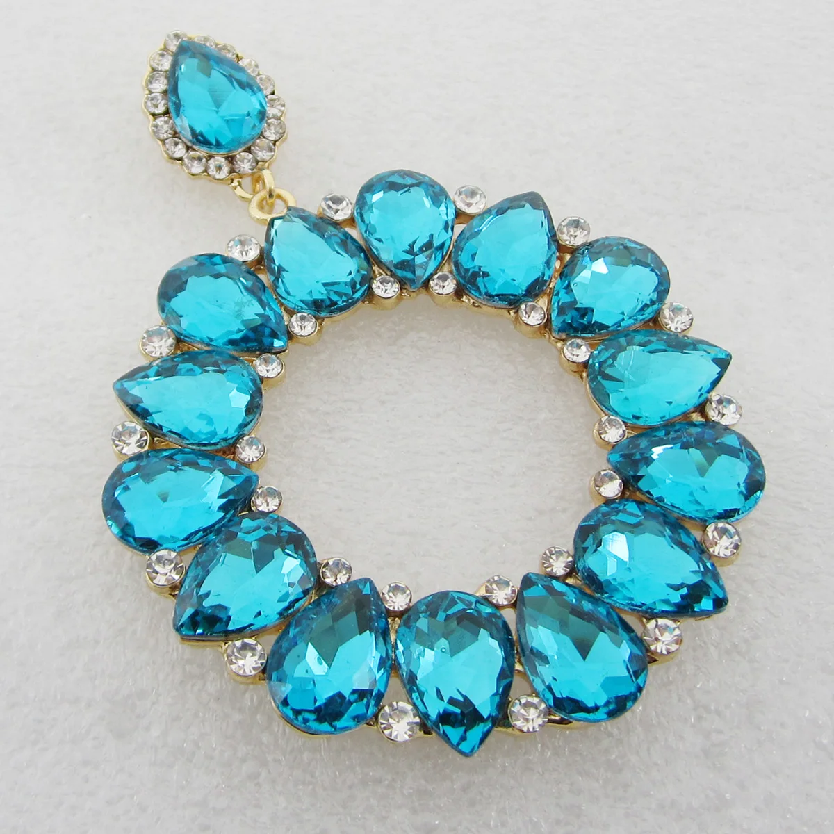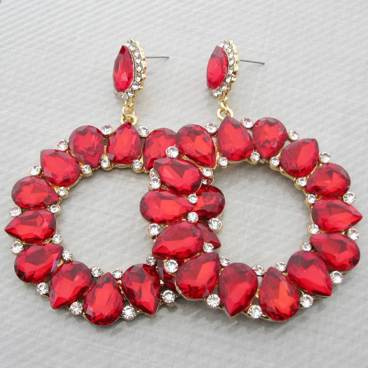 Rhinestone Jewelry-Fashion Round Large Dangle Earrings Luxury Brand Design Sparkly Glass Crystal Charm Female Pendientes Party ACCESSORI JEWELRI