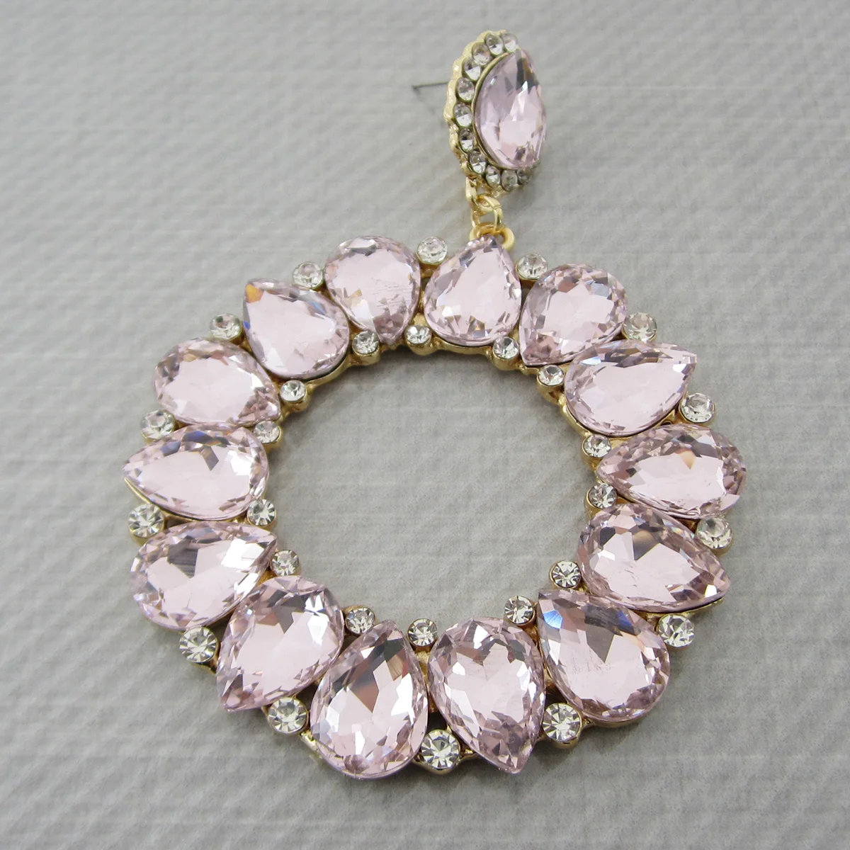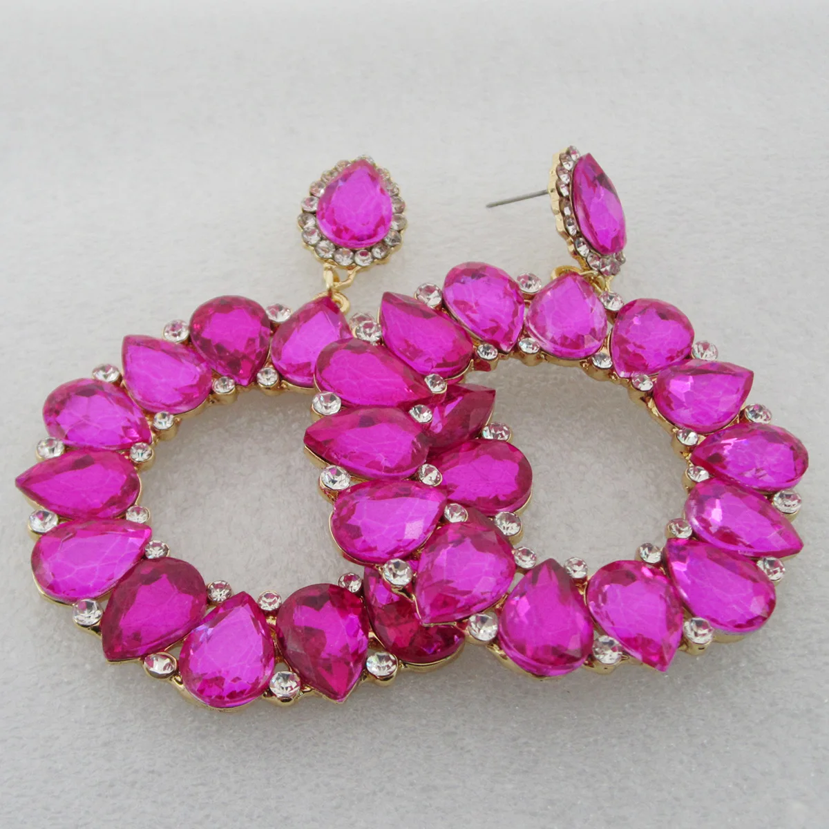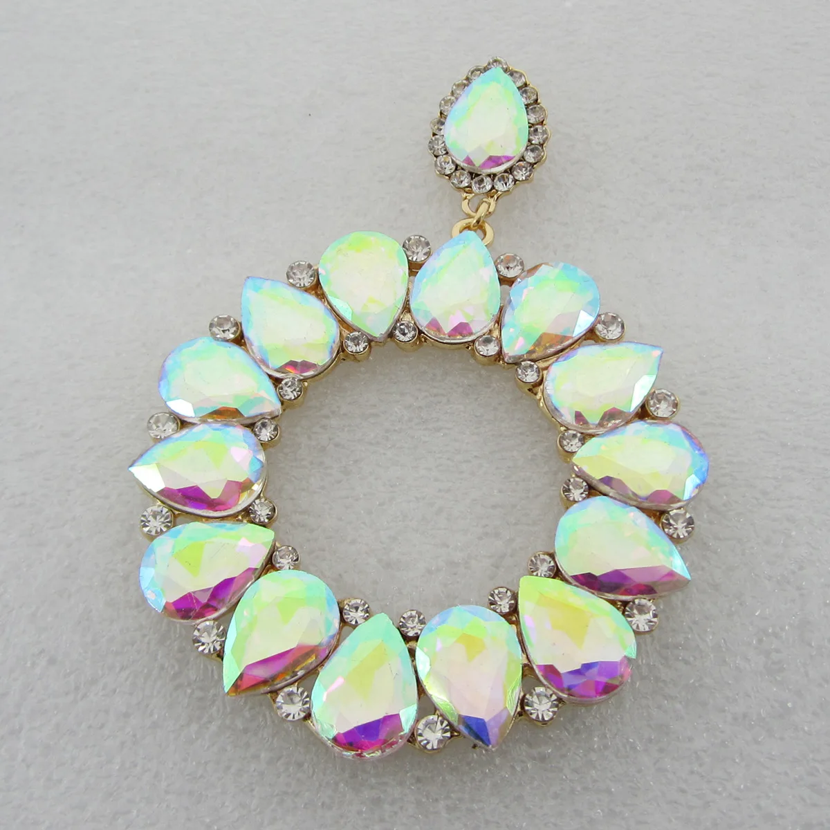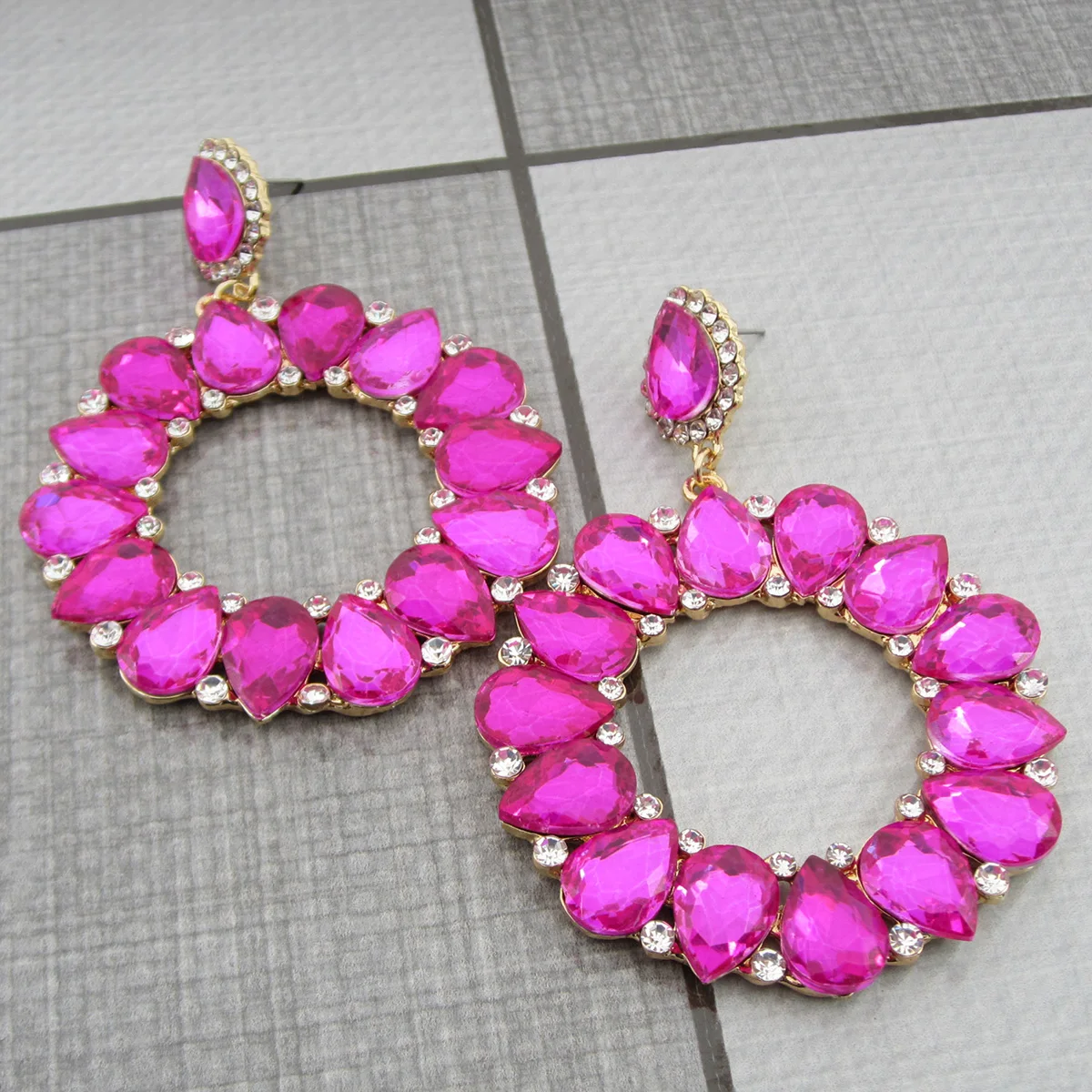 Rhinestone Jewelry-Fashion Round Large Dangle Earrings Luxury Brand Design Sparkly Glass Crystal Charm Female Pendientes Party ACCESSORI JEWELRI
