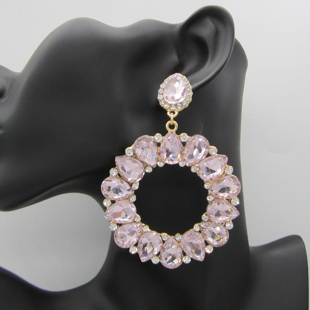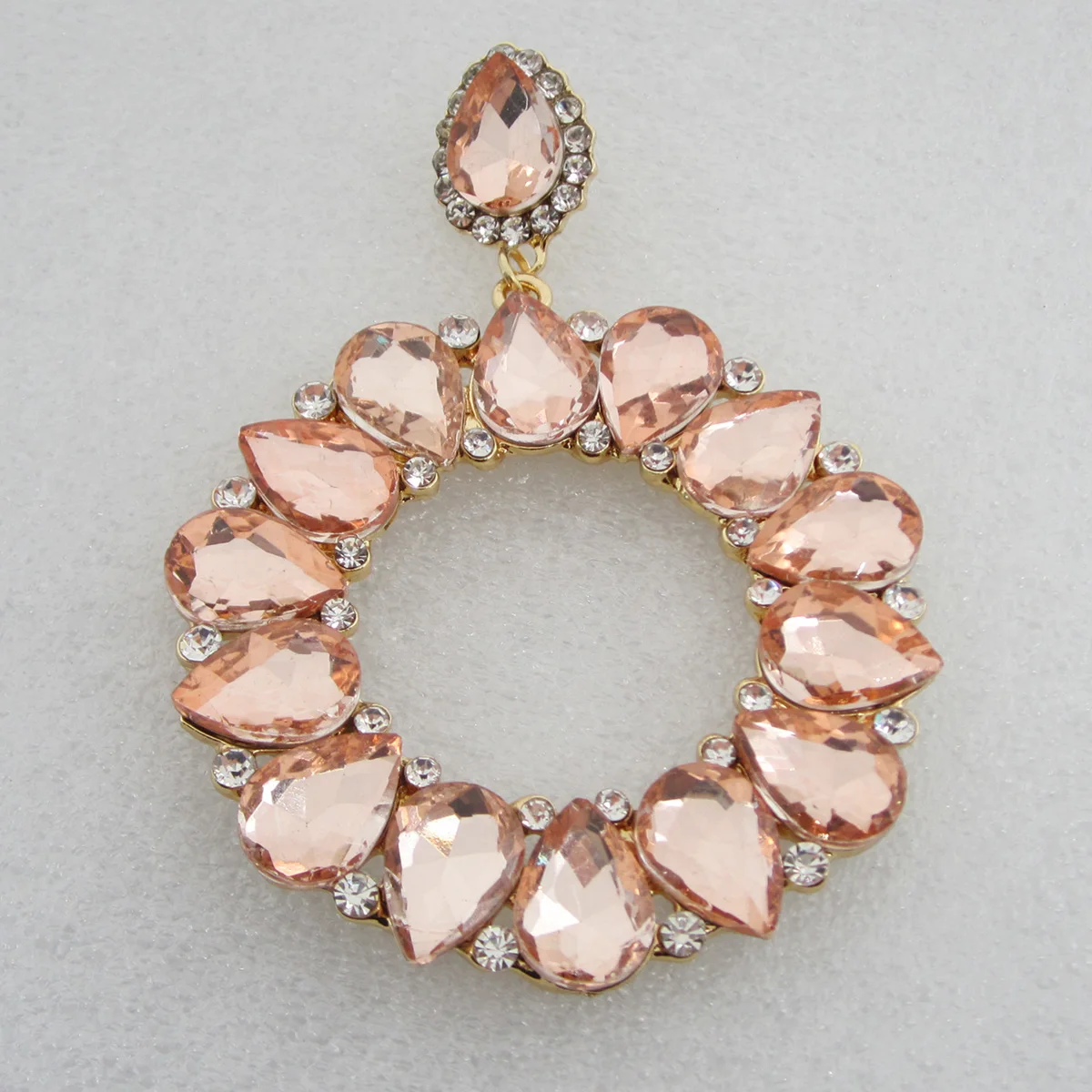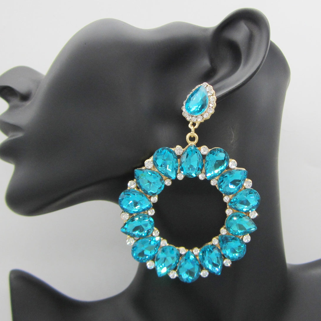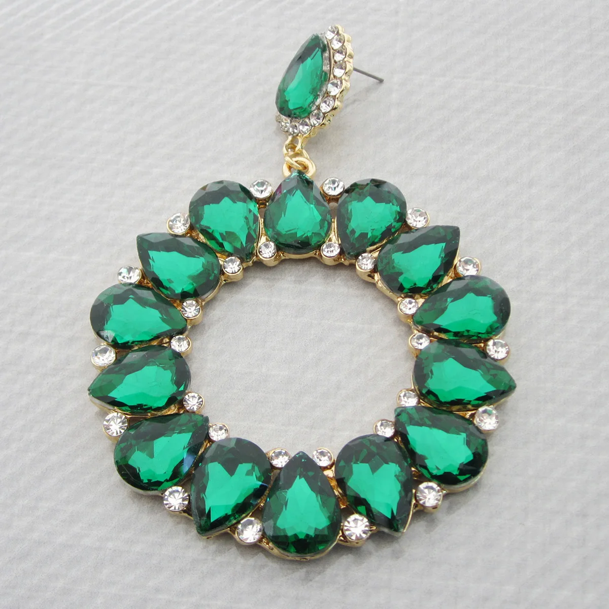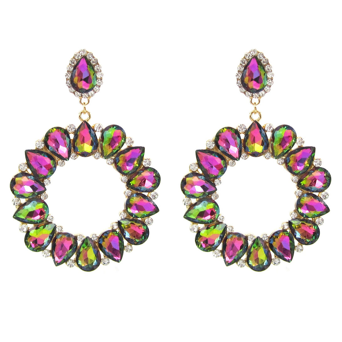 Rhinestone Jewelry-Fashion Round Large Dangle Earrings Luxury Brand Design Sparkly Glass Crystal Charm Female Pendientes Party ACCESSORI JEWELRI