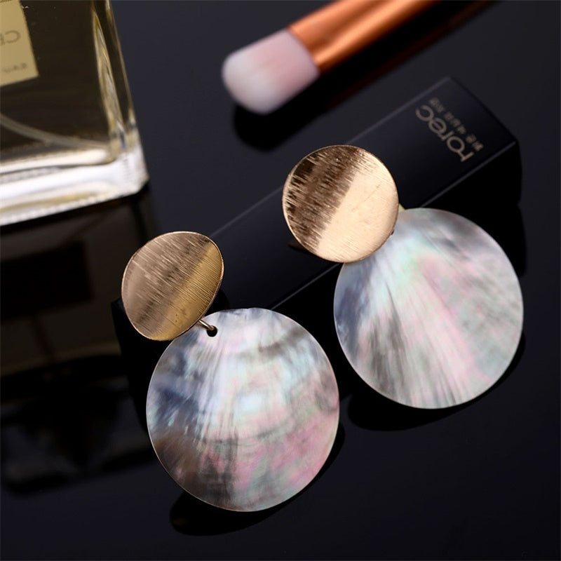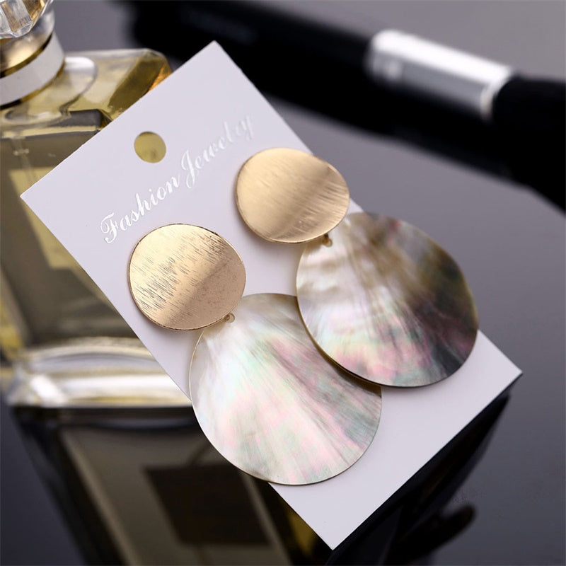 Fashion Earrings-New Fashion Round Shell Clip Earrings Without Piercing Metal Geometric Earrings for Women Gilrs Ladies Statement Jewelry