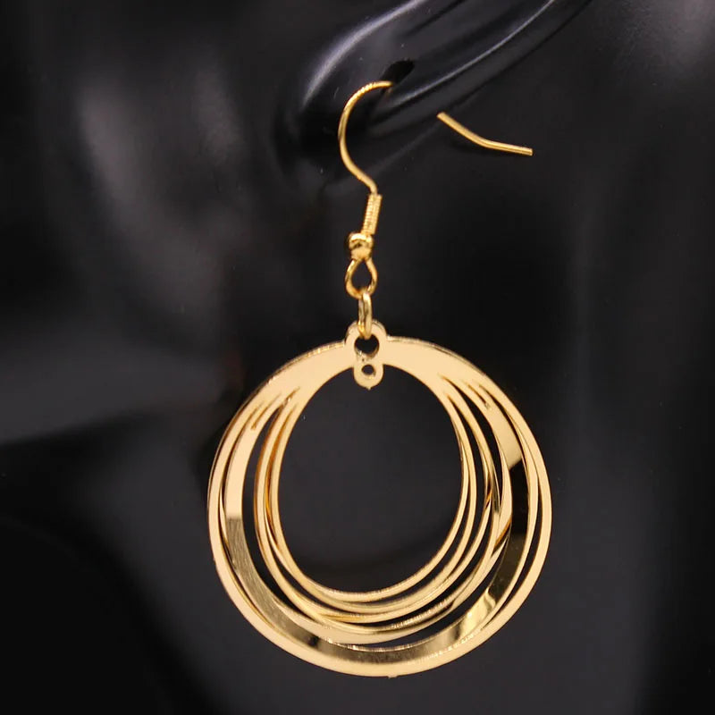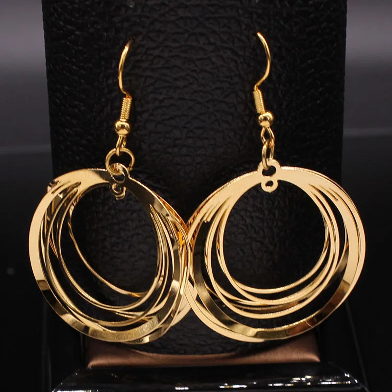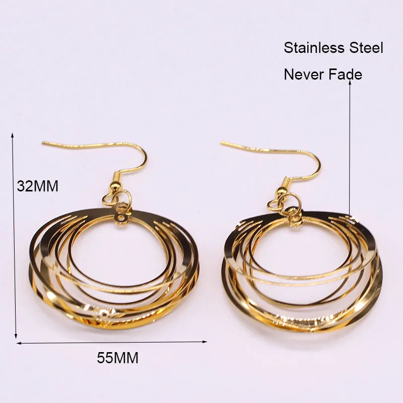 Fashion Round Stainless Steel Drop Earrings for Women Jewelry Gold Color Dangle Earrings