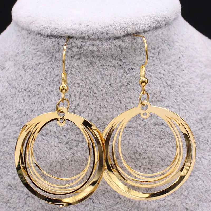 Fashion Round Stainless Steel Drop Earrings for Women Jewelry Gold Color Dangle Earrings Jewelry joyeria