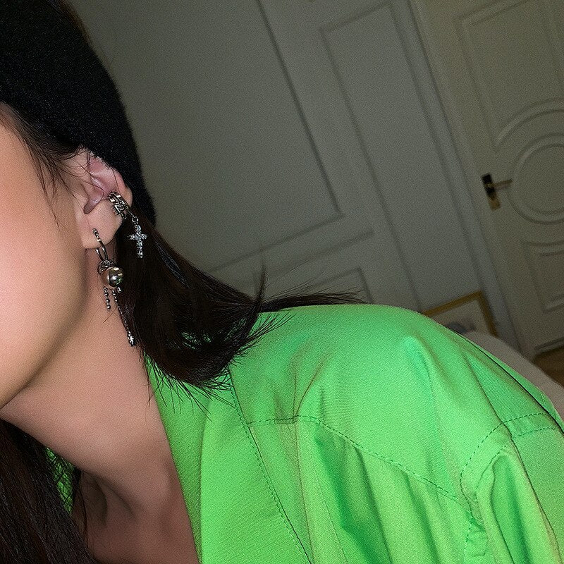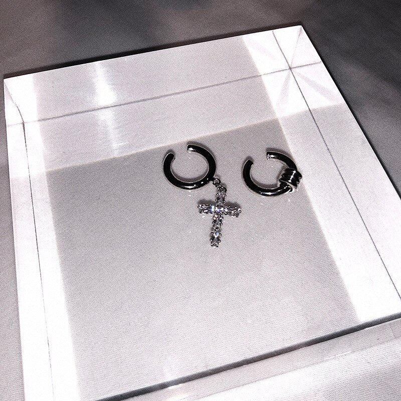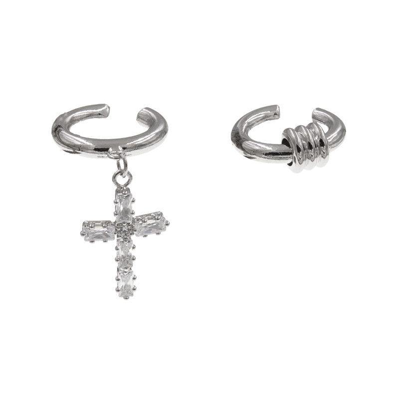 Fashion Earrings- Fashion Silver Color Cross Asymmetrical Ear Clip Earring For Young Girls Teen Round Circle Party Accessories Gift
