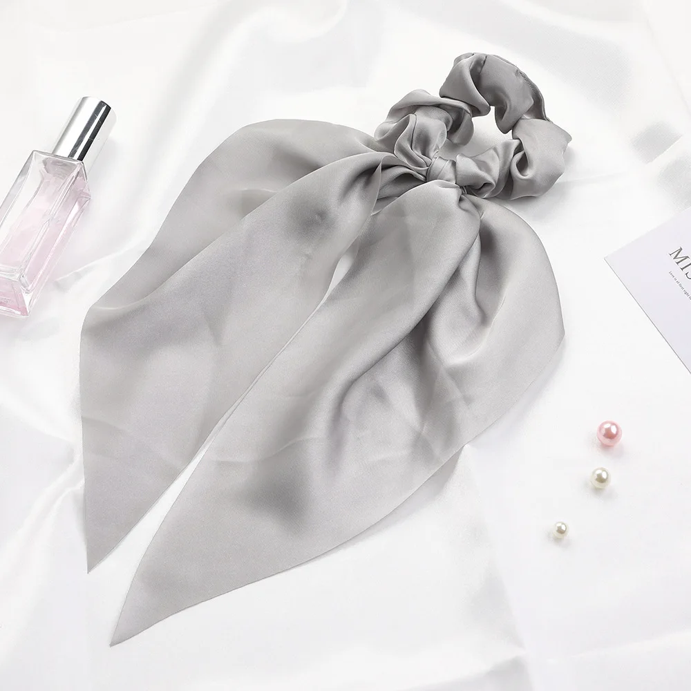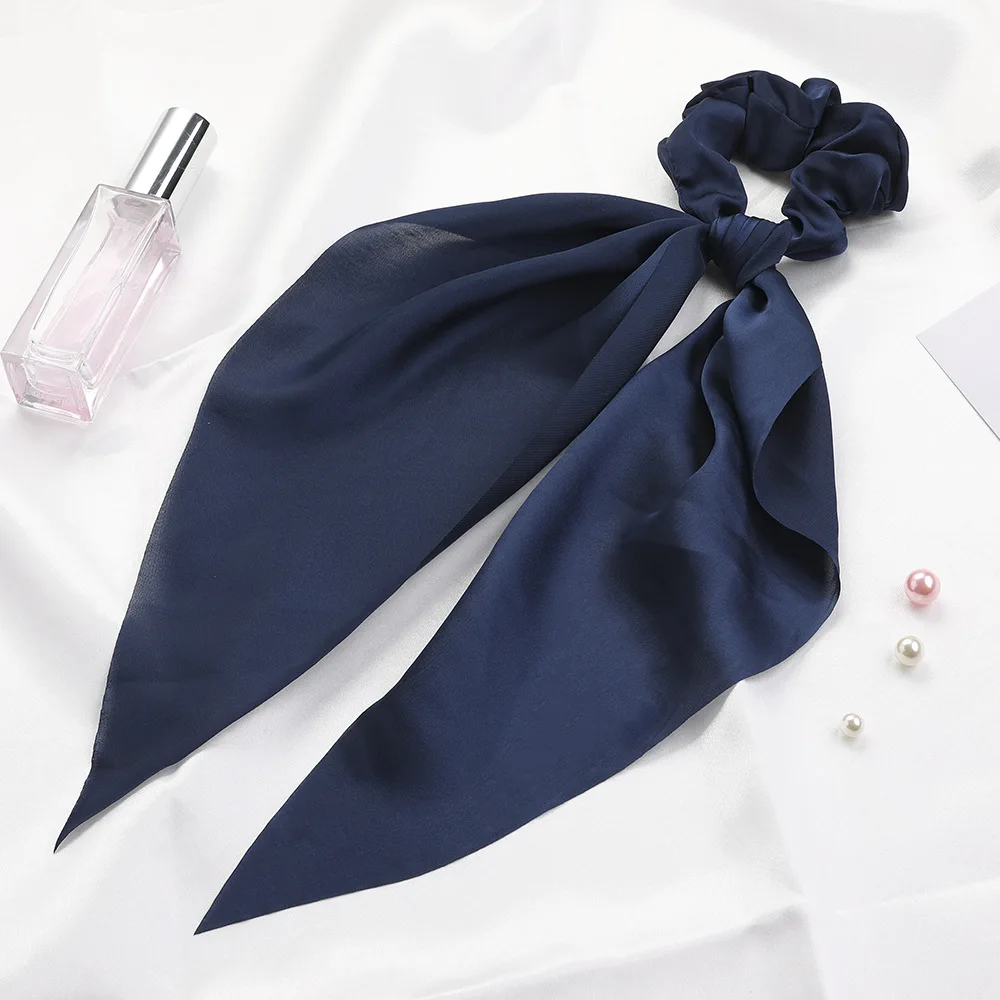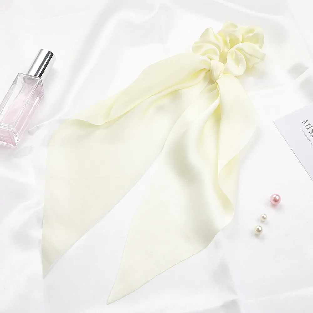 Women's Hair Accessories-Fashion Solid Color Scrunchies Long Hair Rope Korean Hair Ties for Women Ponytail Scarf Sweet Elastic Hair Band Hair Accessories