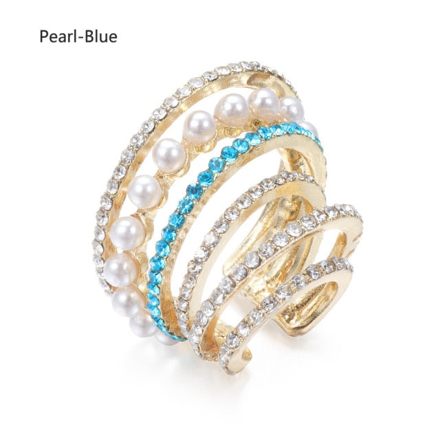 Fashion Stackable Wide Ear Cuffs Earrings Pearl Rhinestone Cartilage Clip on Earrings