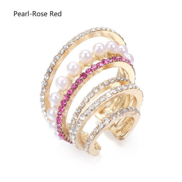 Fashion Earrings-Women Fashion Stackable Wide Ear Cuffs Earrings Pearl Rhinestone Cartilage Clip on Earrings Earcuff Without Piercing Jewelry