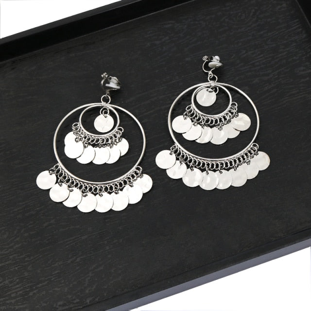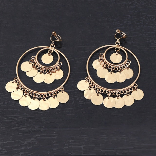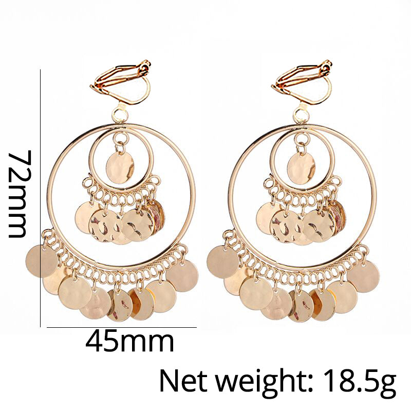 Fashion Earrings- Fashion Statement Clip On Earrings Big Round Geometric No Pierced Ear Clips for Women Hanging Earring modern Jewelry