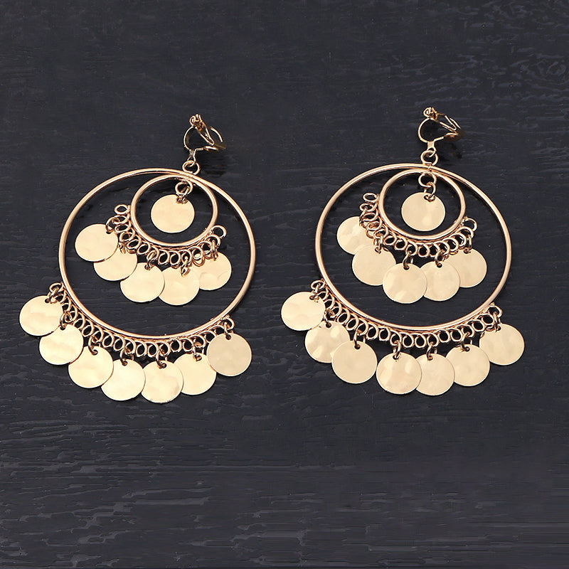 Fashion Statement Clip On Earrings Big Round Geometric No Pierced Ear Clips for Women