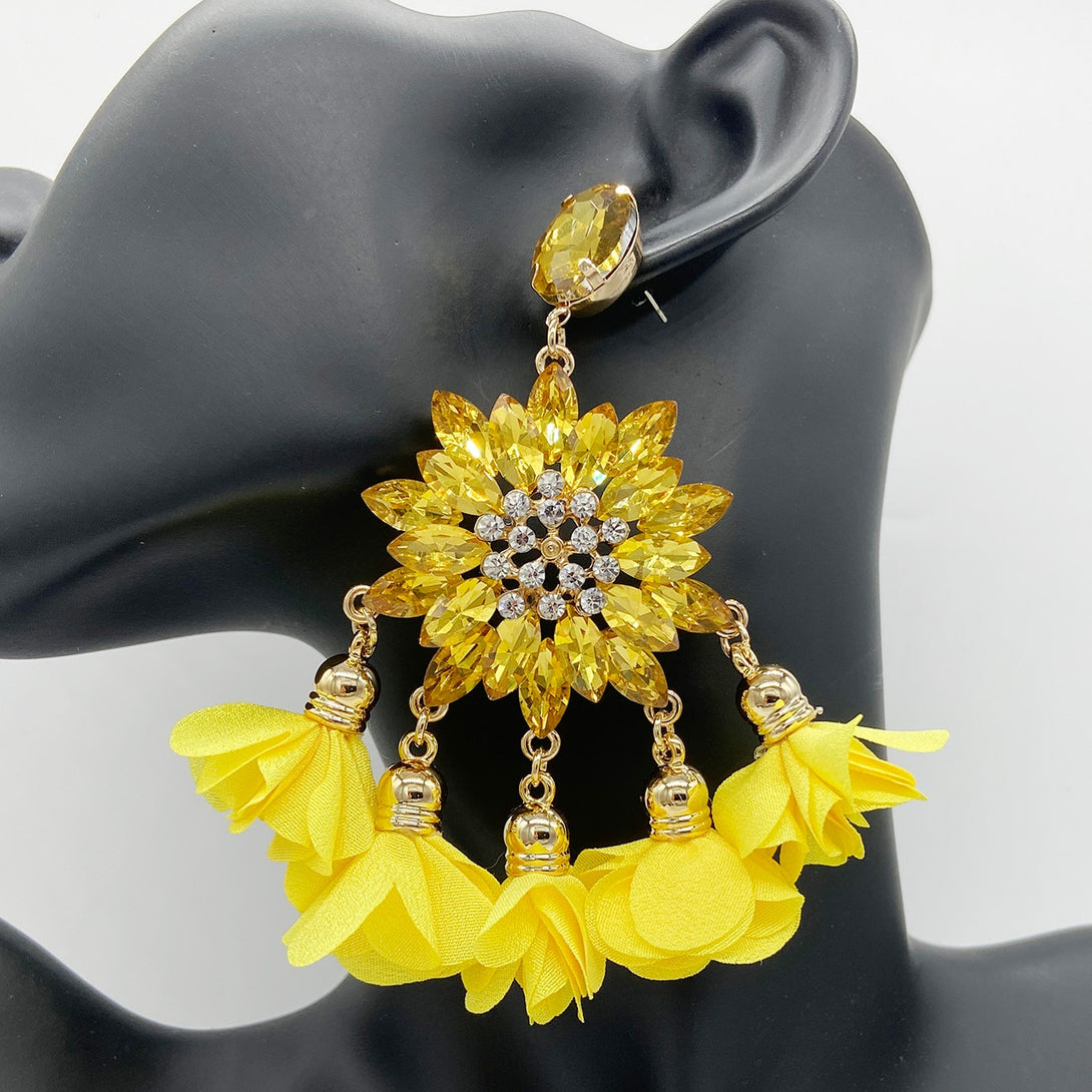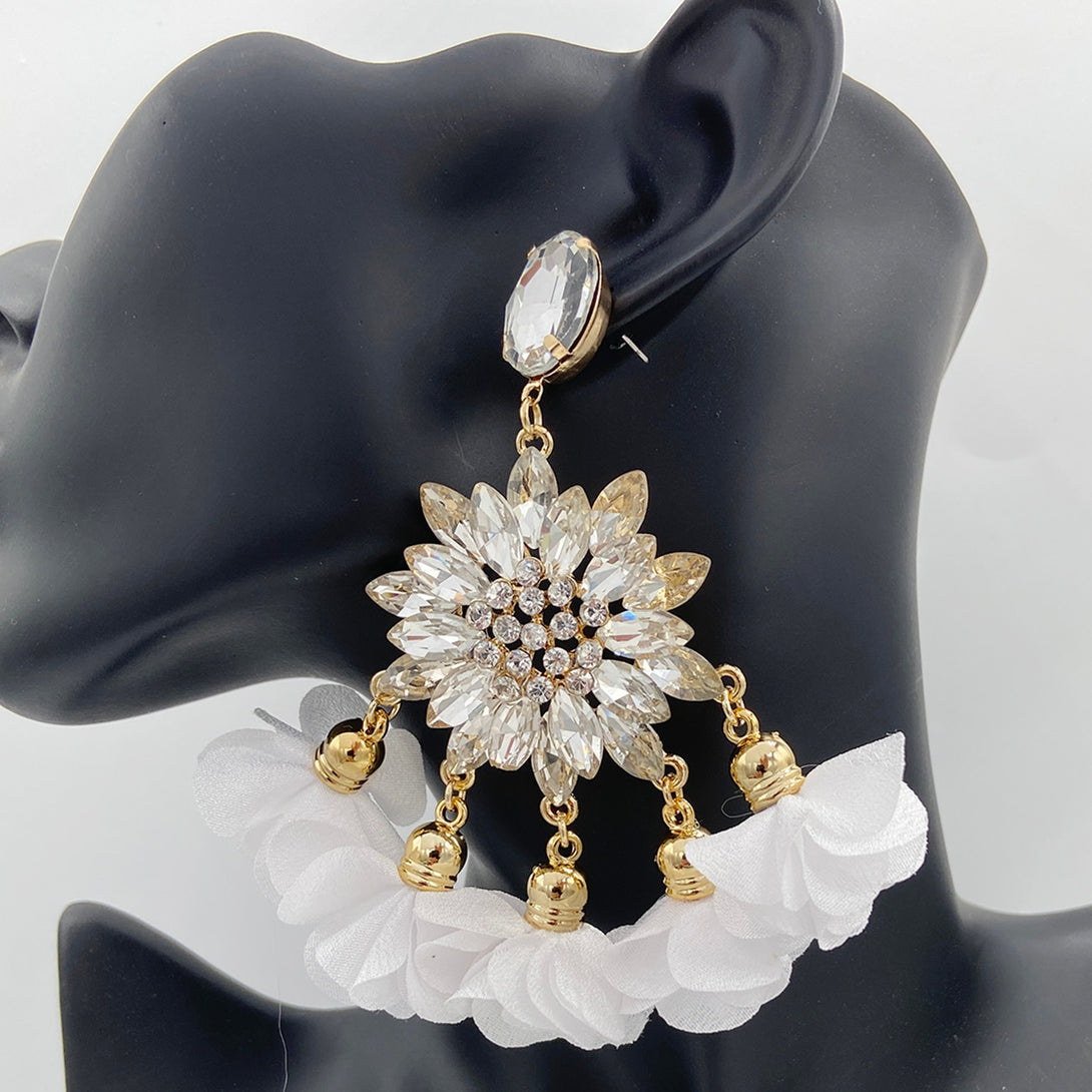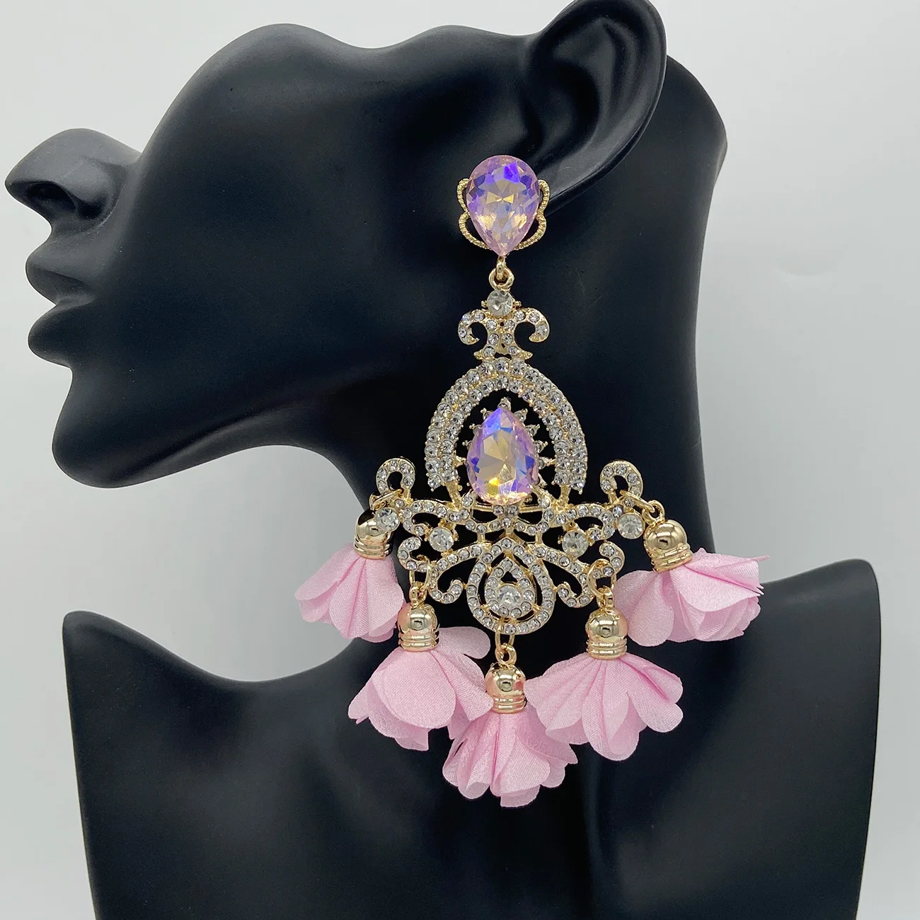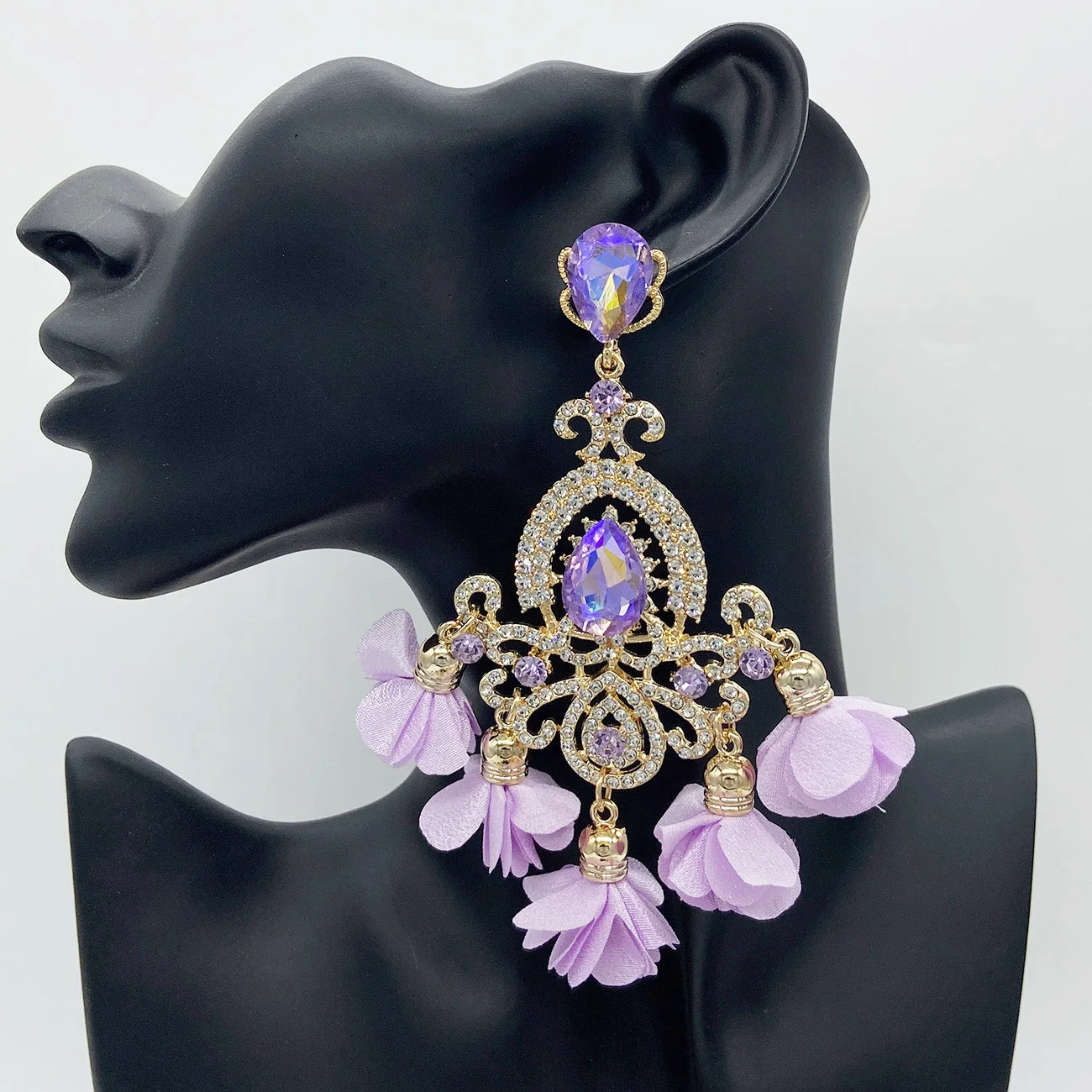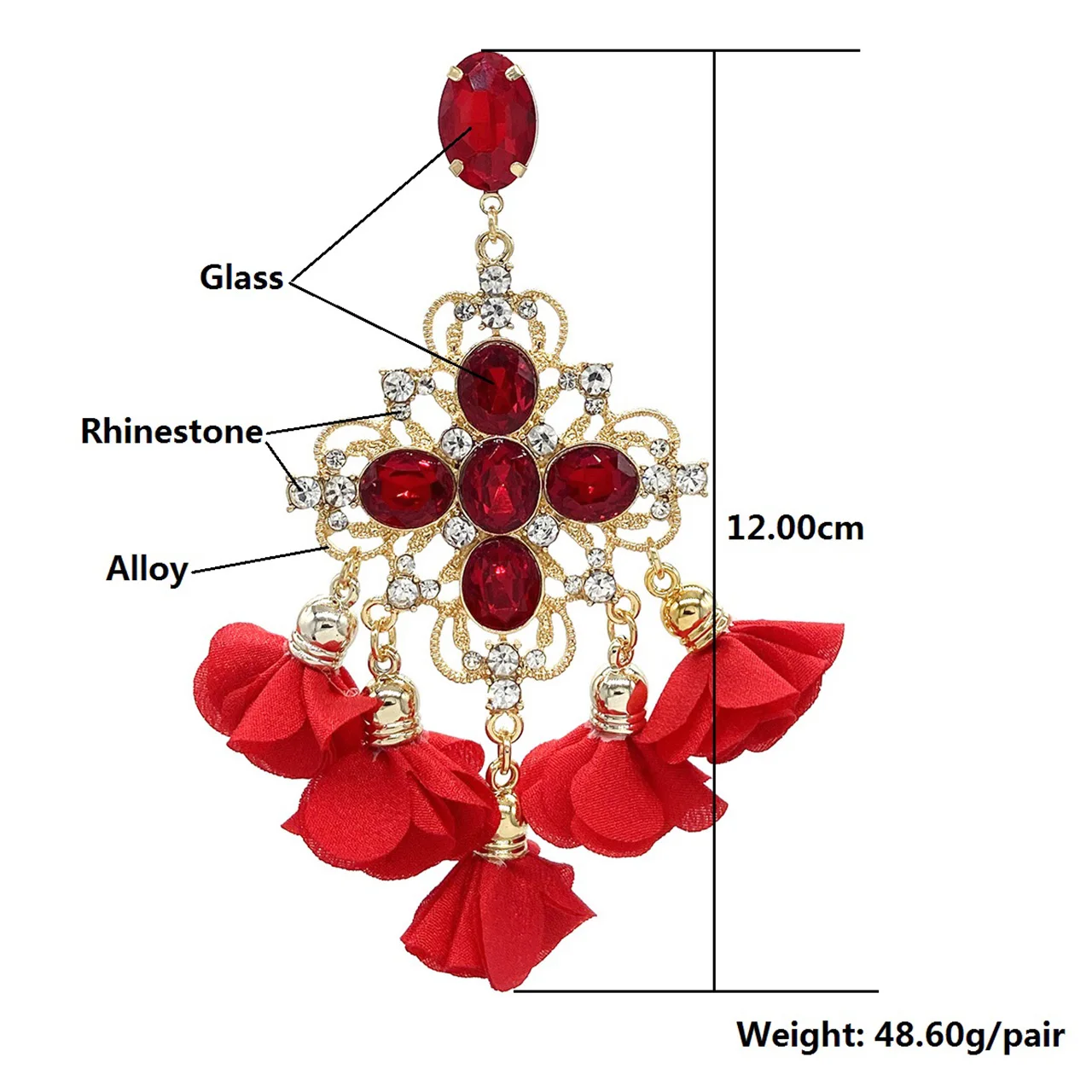 Rhinestone Jewelry-Fashion Statement Earring Long Flower Dangle Big Earrings For Women Euorpe Evening Party Crystal Tassel Earings