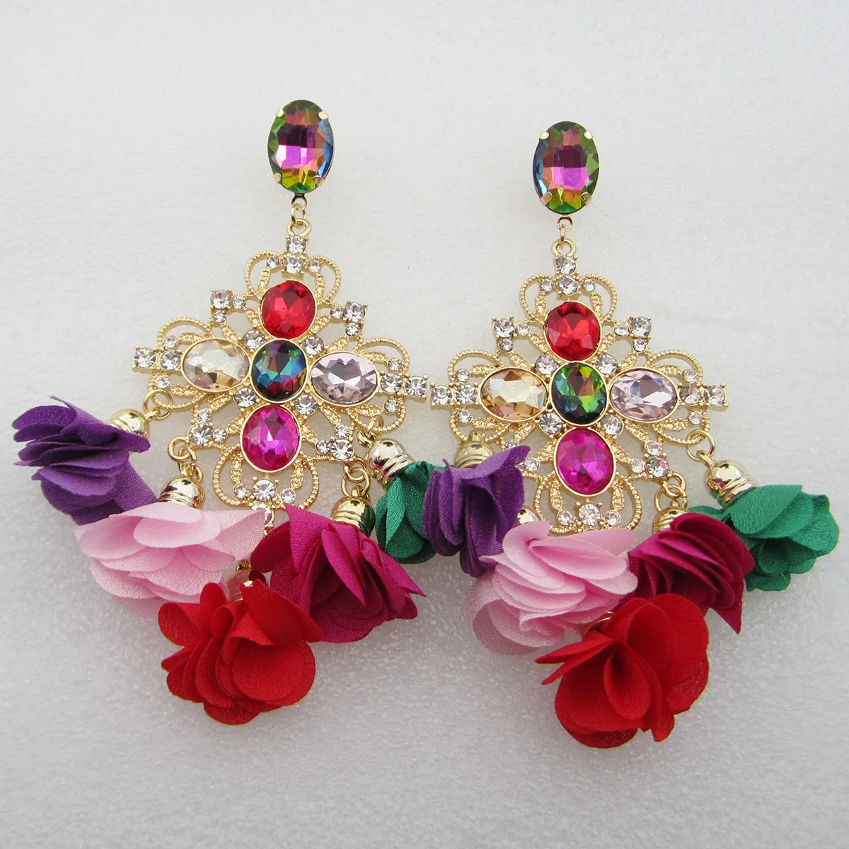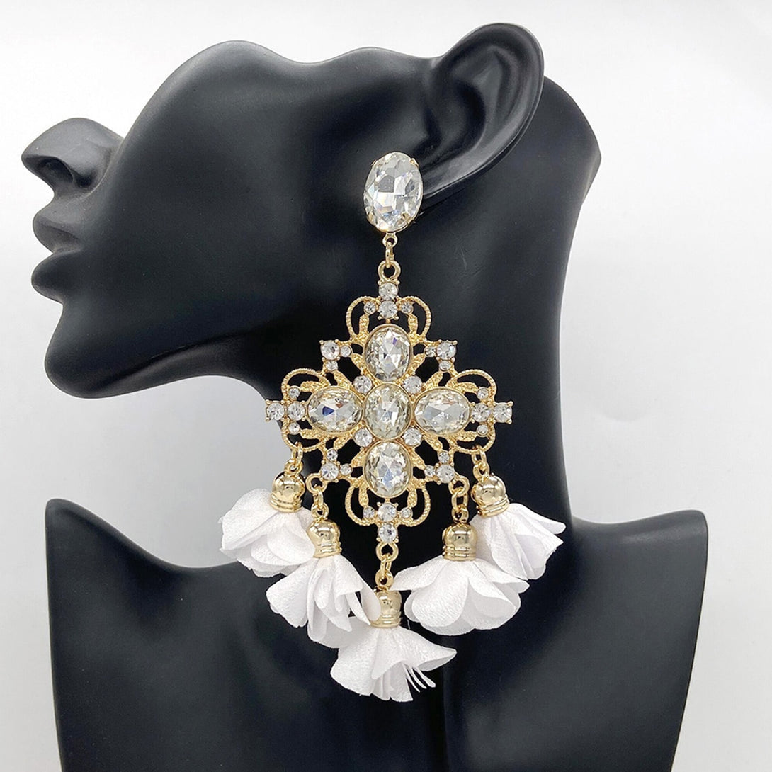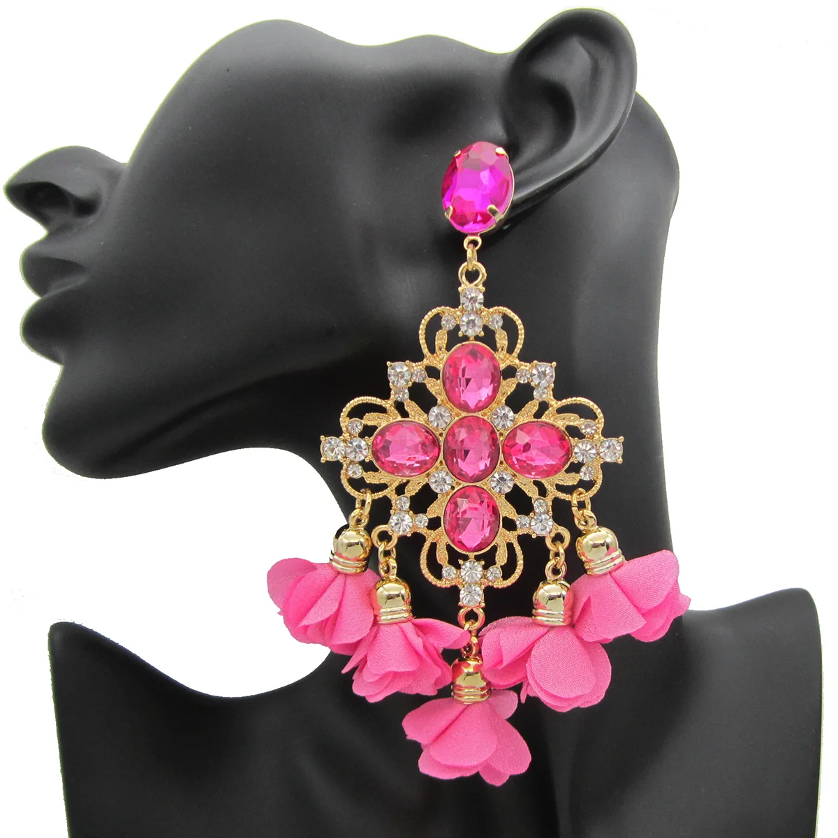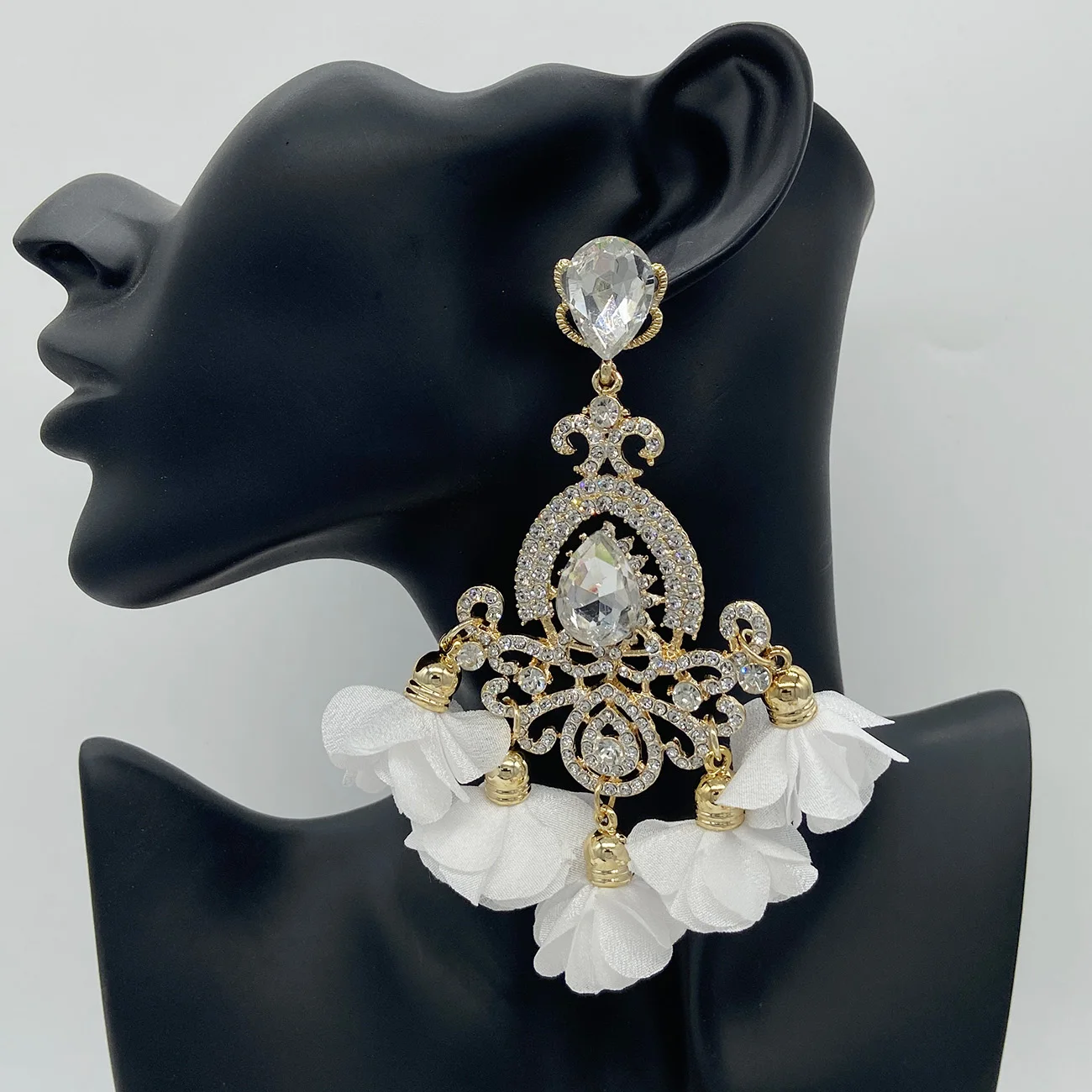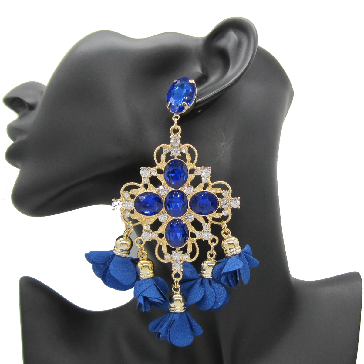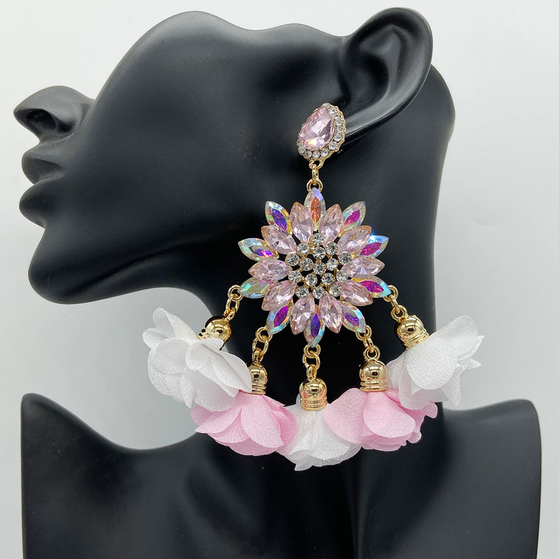 Rhinestone Jewelry-Fashion Statement Earring Long Flower Dangle Big Earrings For Women Euorpe Evening Party Crystal Tassel Earings