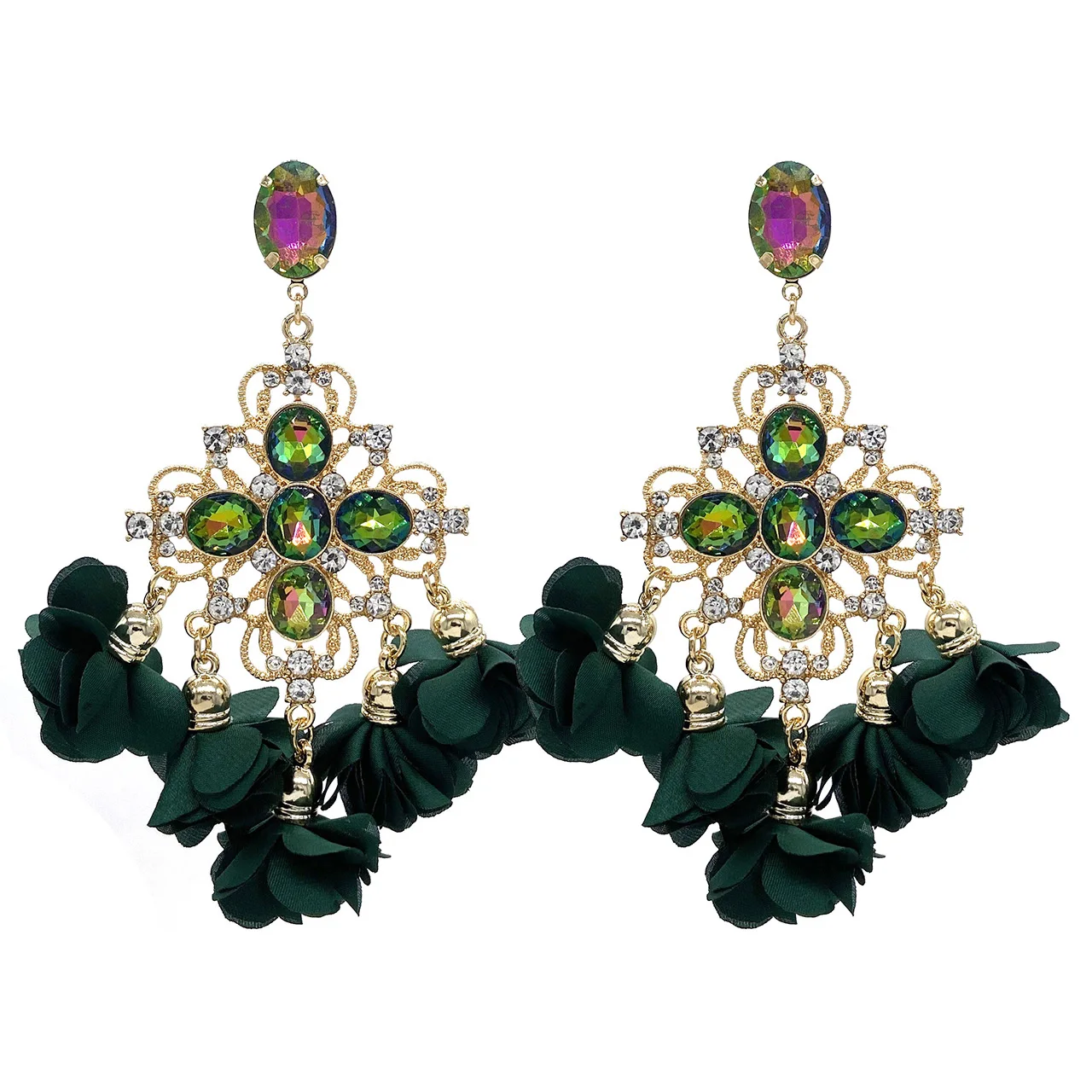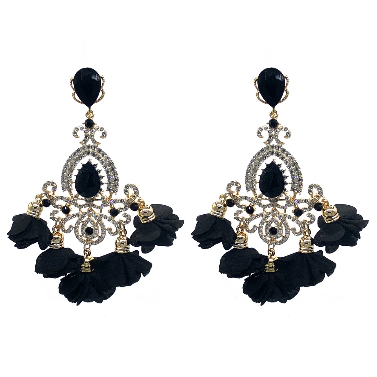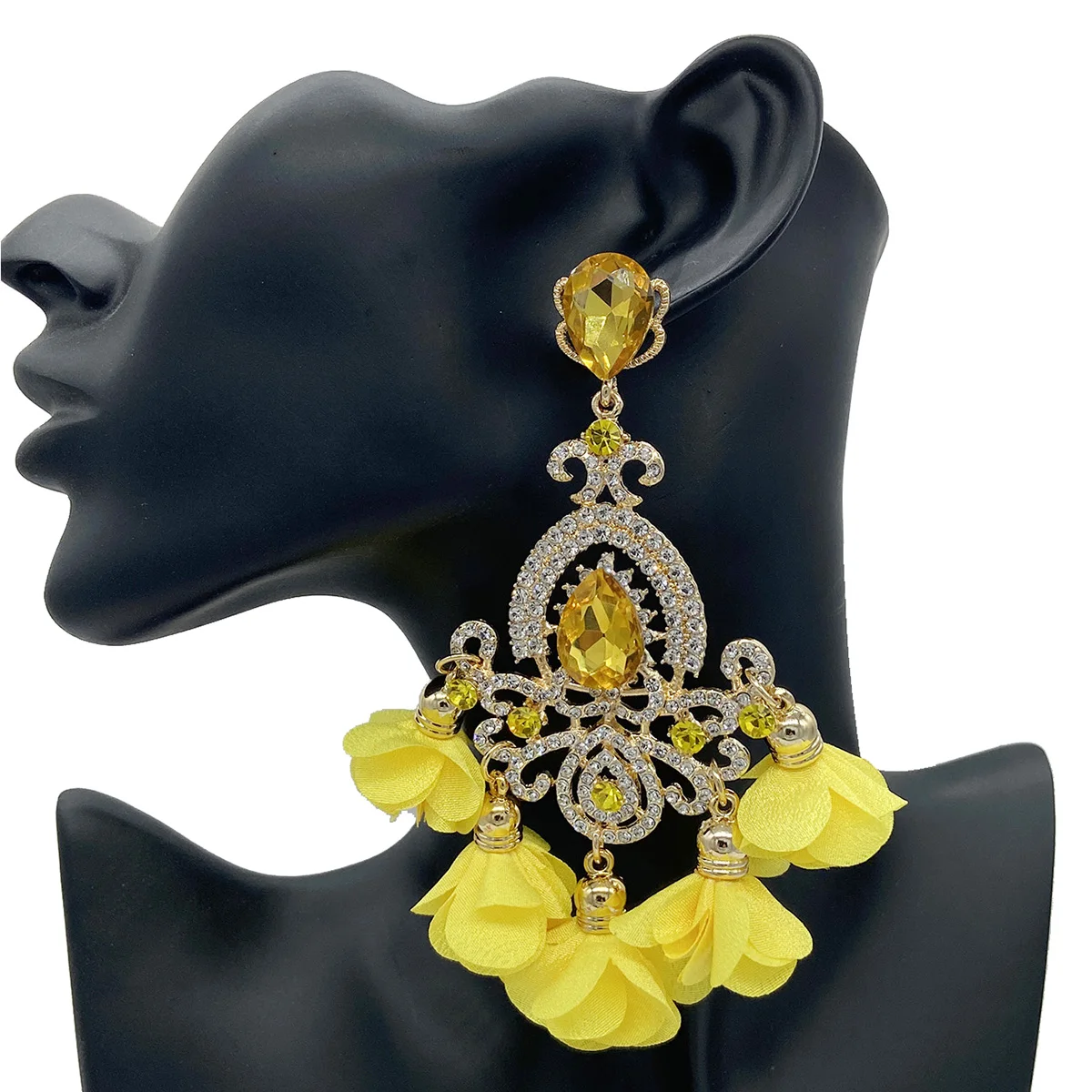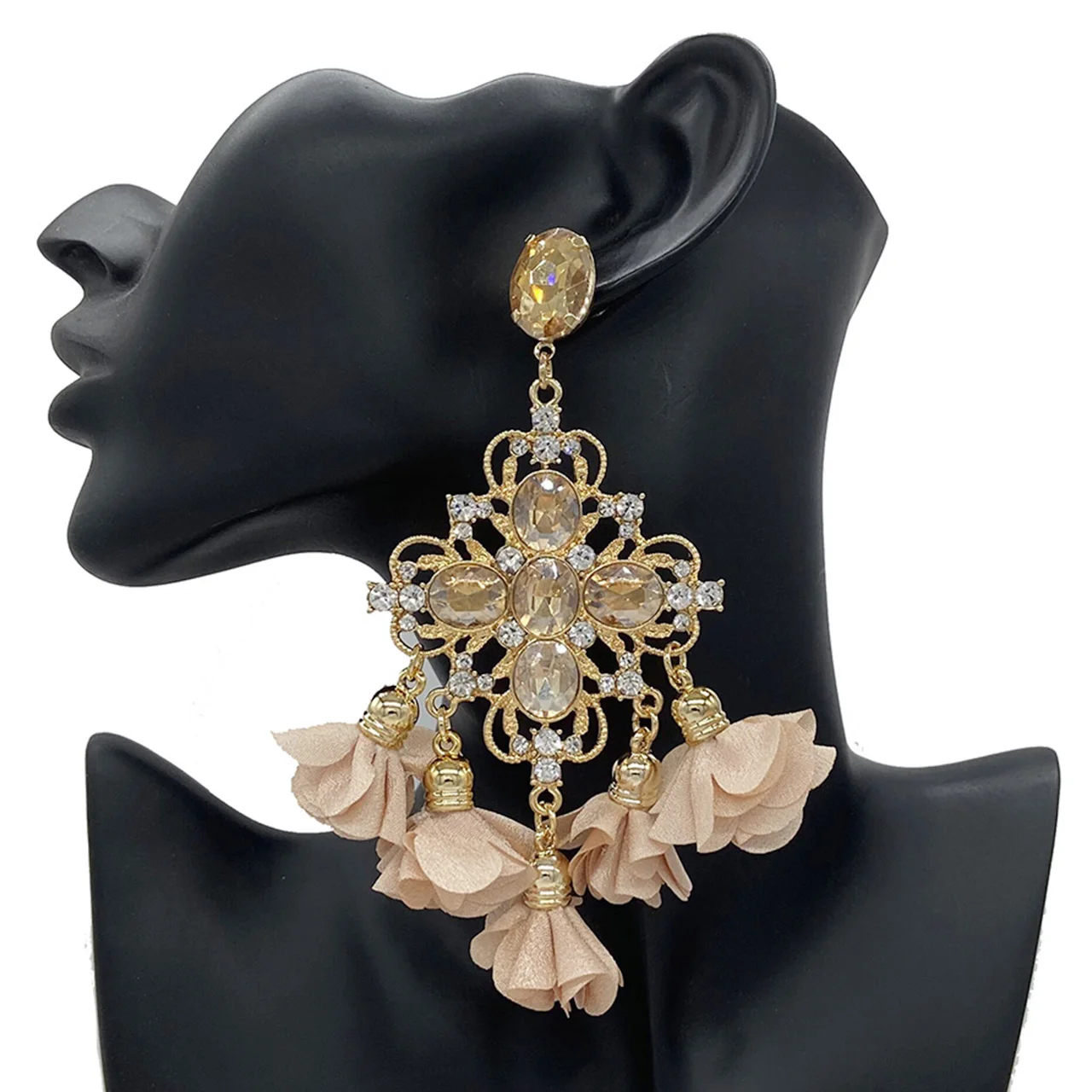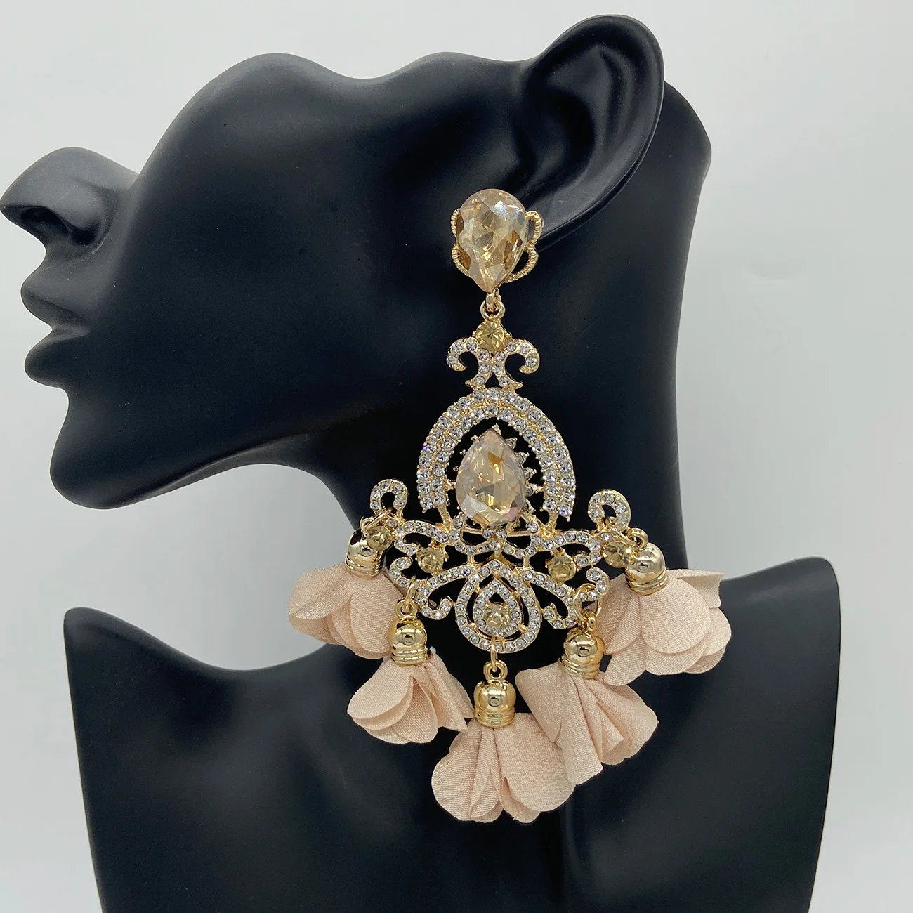 Rhinestone Jewelry-Fashion Statement Earring Long Flower Dangle Big Earrings For Women Euorpe Evening Party Crystal Tassel Earings