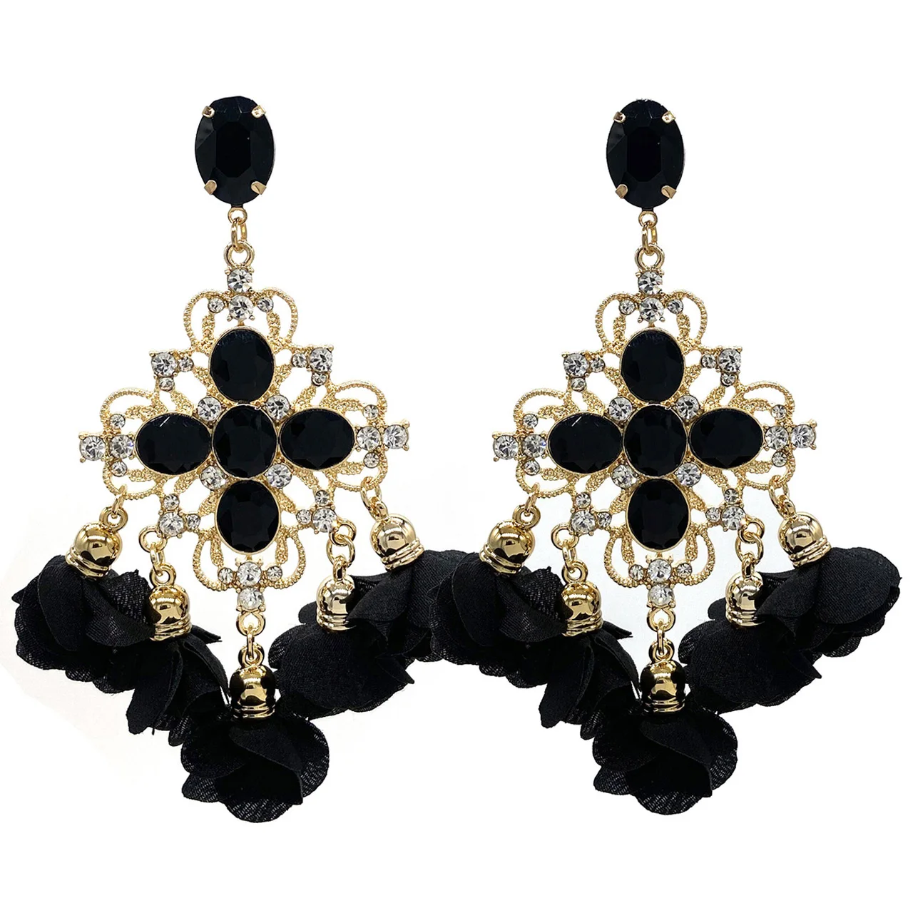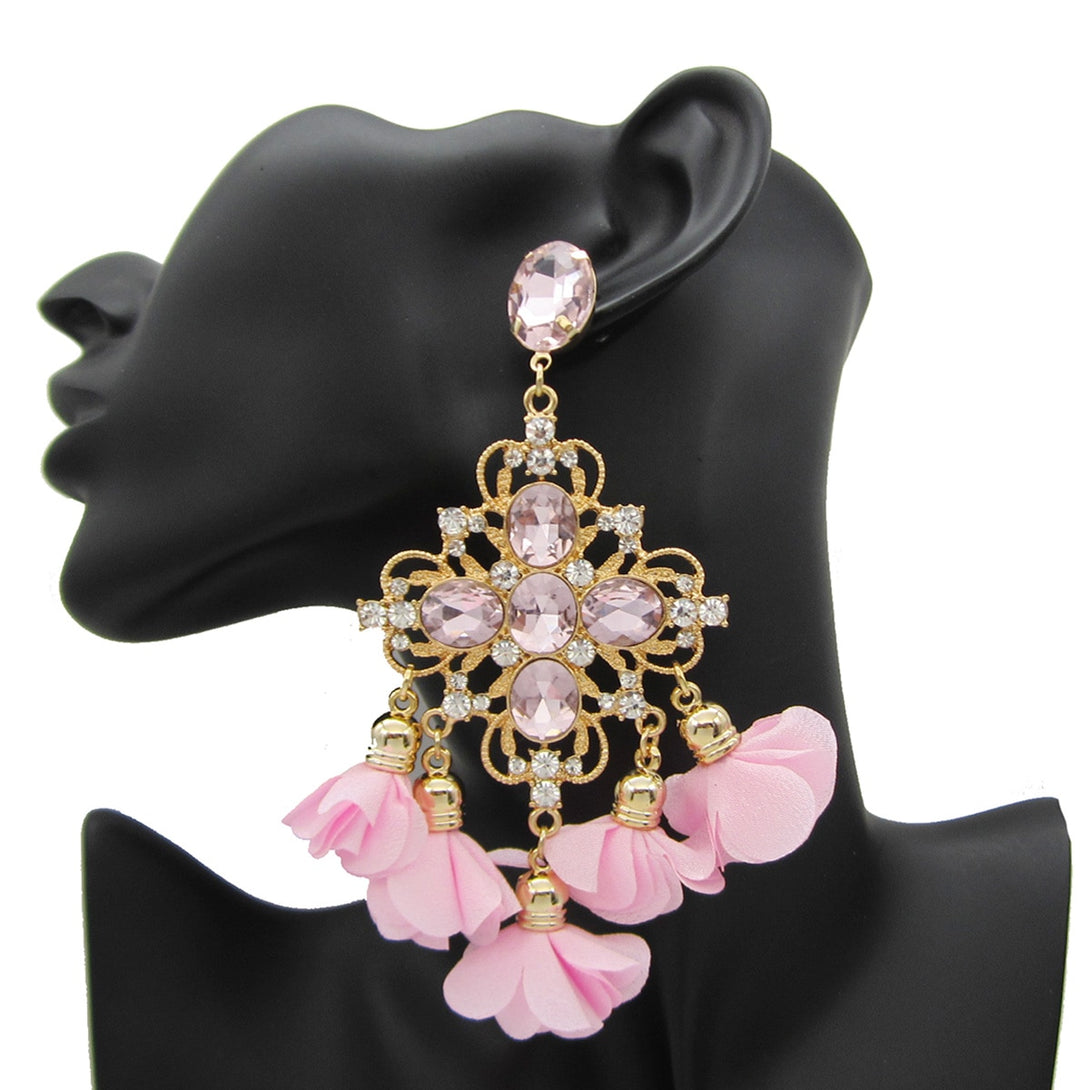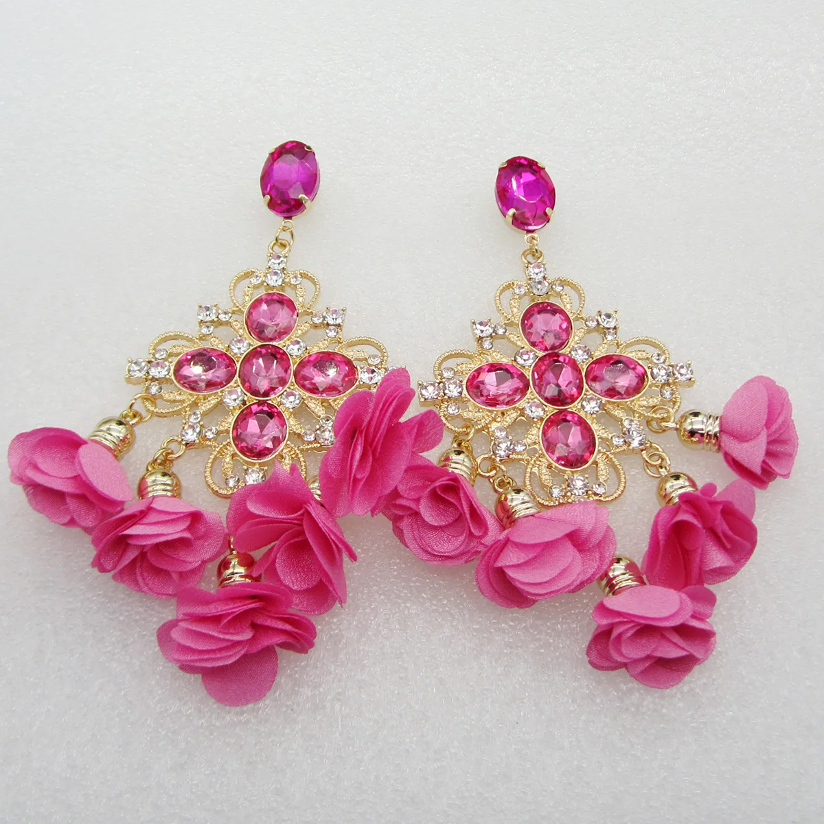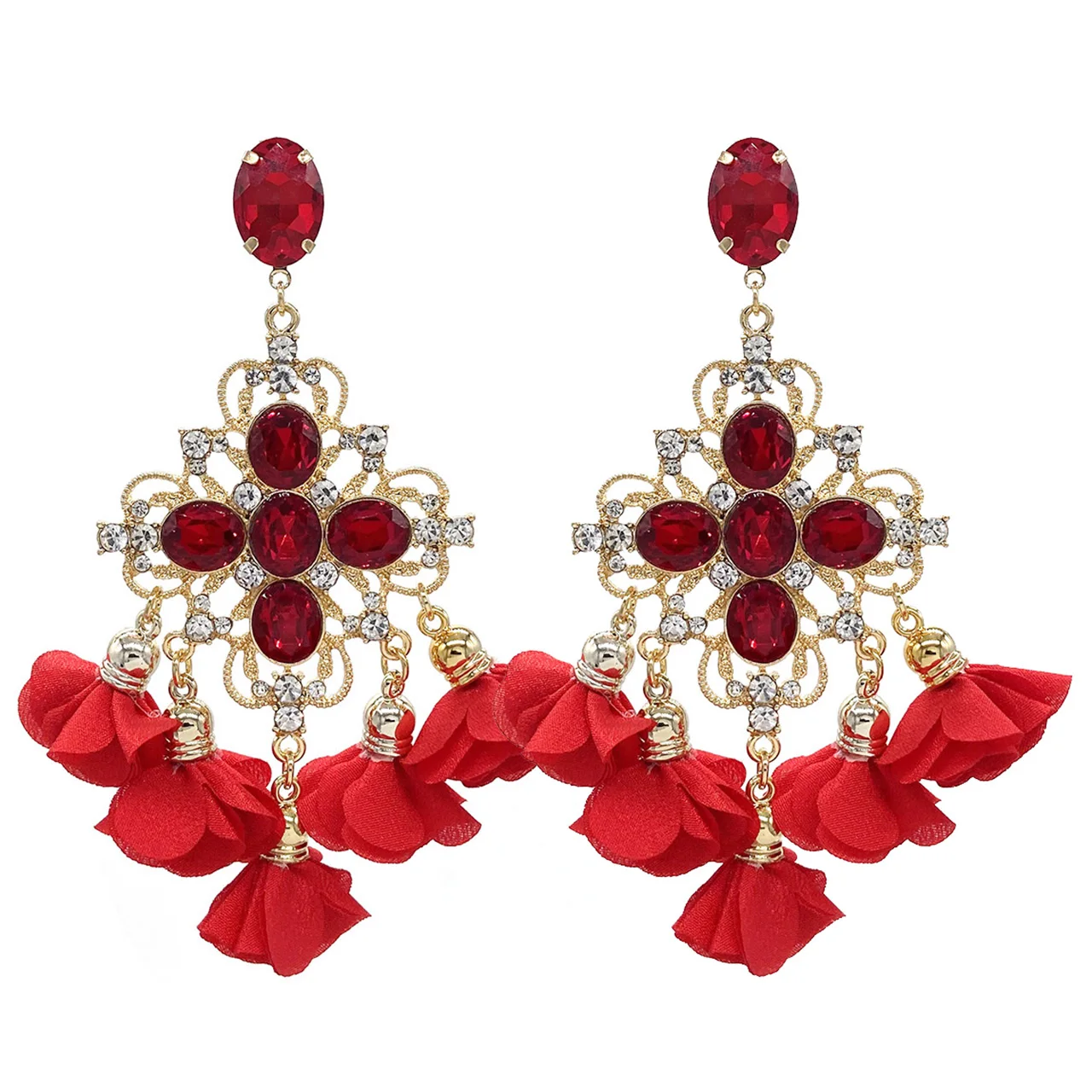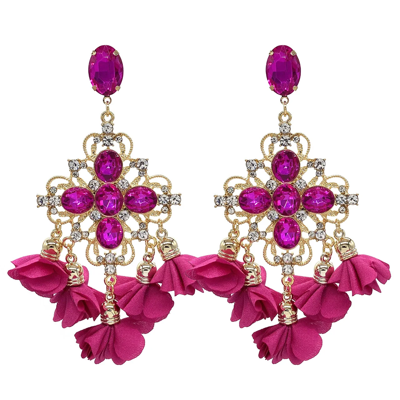 Rhinestone Jewelry-Fashion Statement Earring Long Flower Dangle Big Earrings For Women Euorpe Evening Party Crystal Tassel Earings
