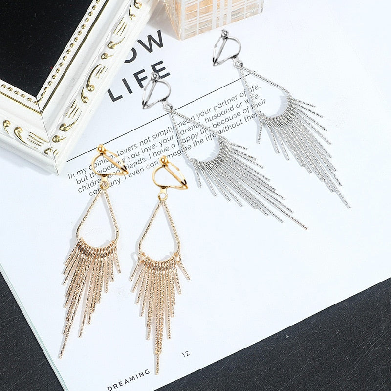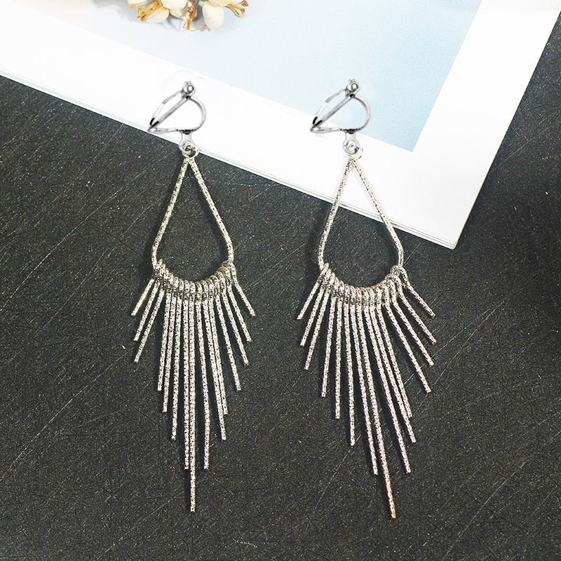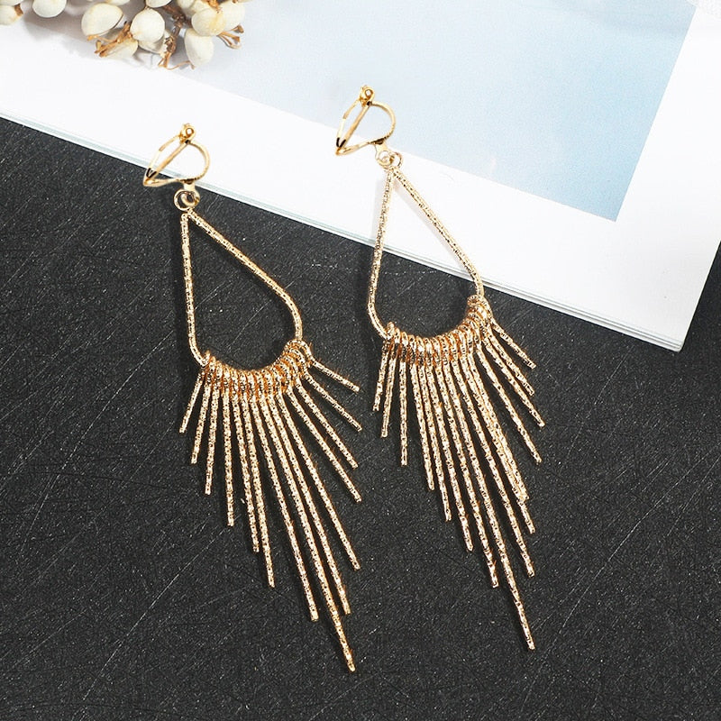 Fashion Earrings-Fashion Statement Non Pierced Clip On Earrings 2022 Metal Geometric Tassel Earrings For Women Earrings Modern Jewelry