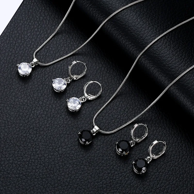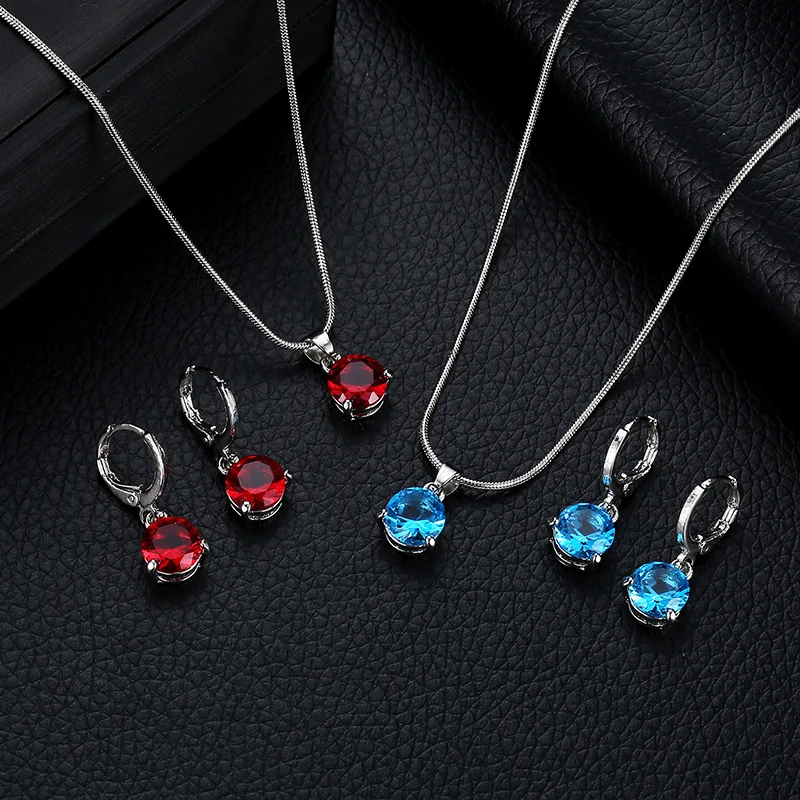New Fot Fashion Temperament Jewelry Necklace Two-Piece Round Multicolor Crystal Pendant Set Accessories