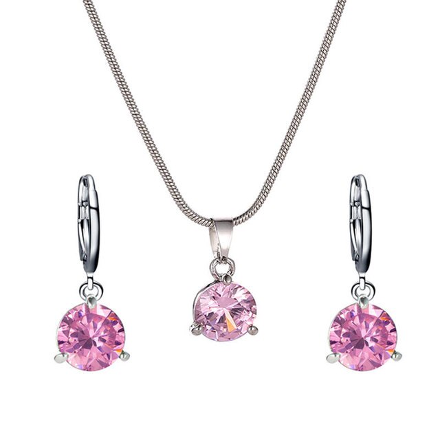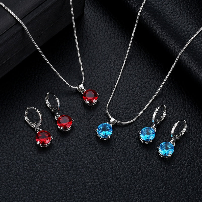 Fashion Temperament Necklace Two-Piece Round Multicolor Crystal Pendant Set