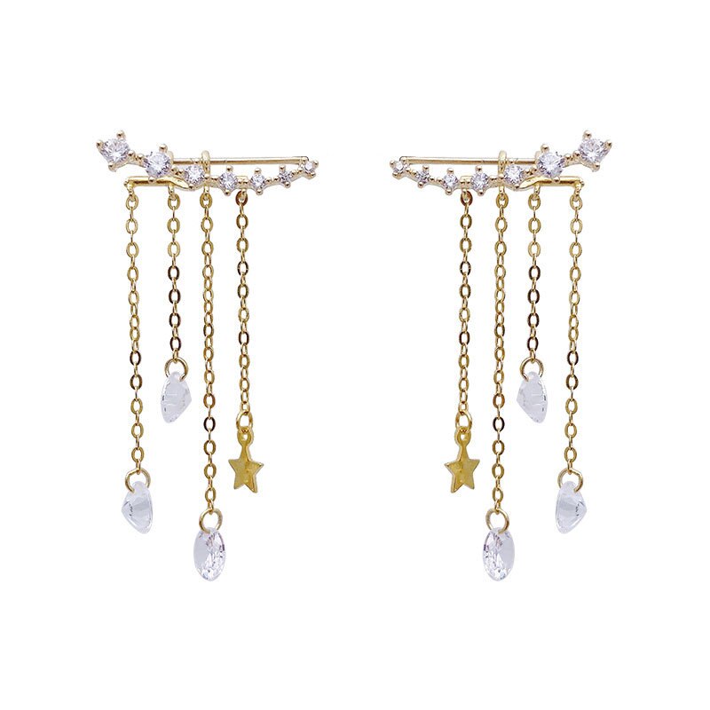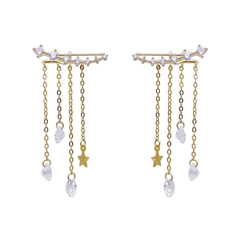 Fashion Earrings-Fashion Temperament Star Tassel Drop Earrings Exquisite Splittable Dangle Clips Earrings For Women Wendding Jewelry