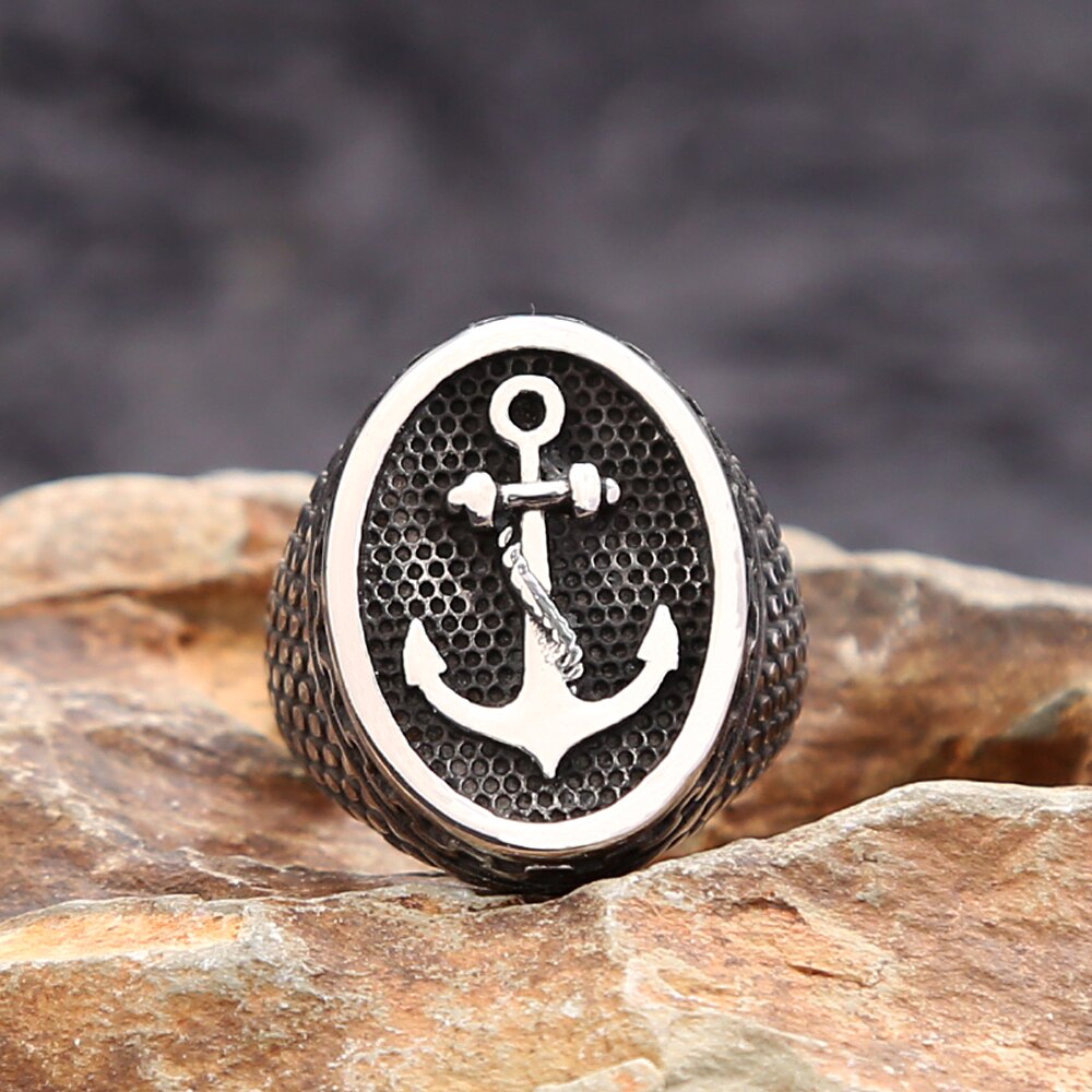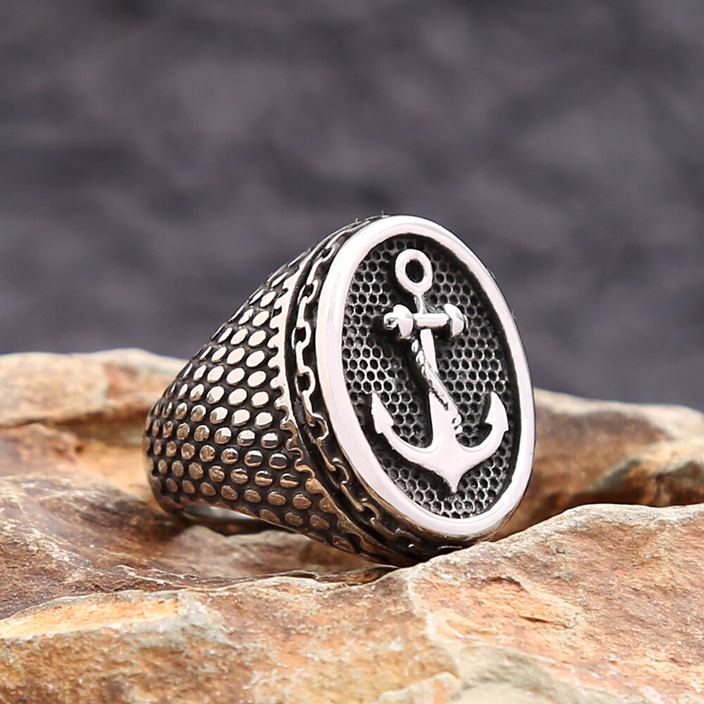 Name: Fashion Vintage Viking Anchor Ring For Men Women Punk Stainless Steel Special Design Dot Bump Ring Amulet Jewelry Gift