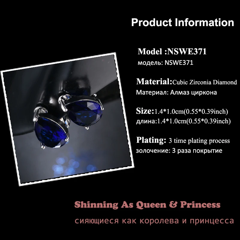 Fashion Earrings-Fashion Water Drop Cubic Zirconia Clip Earrings With Elegant Blue Stone Earrings for Punk Girl Party Gift