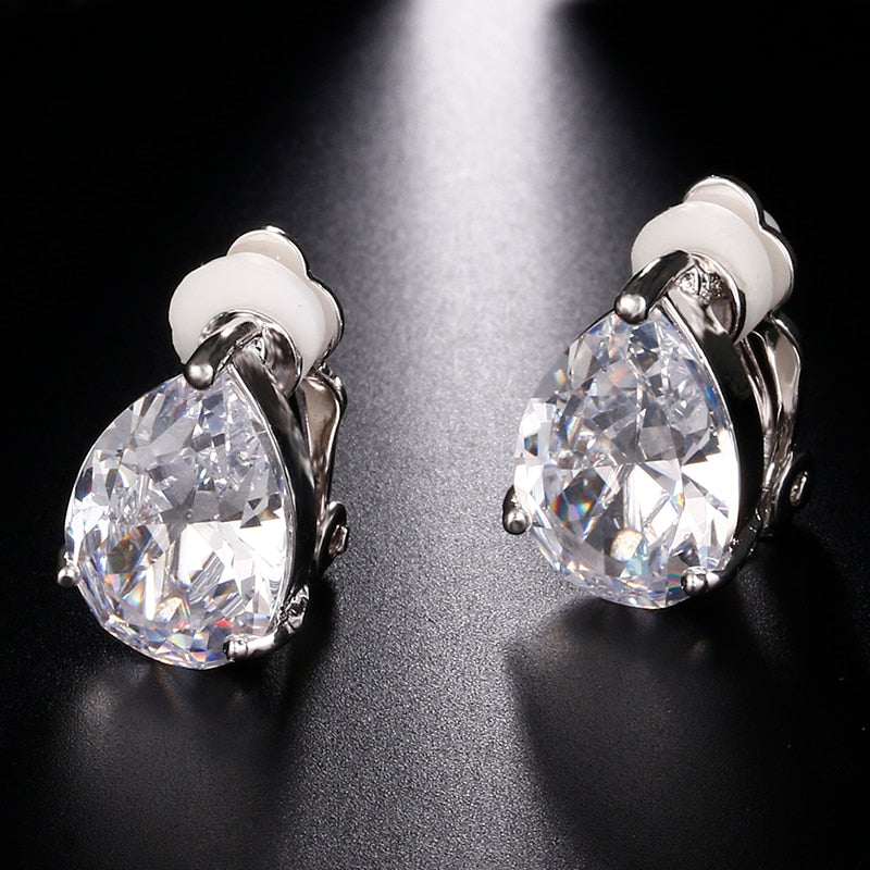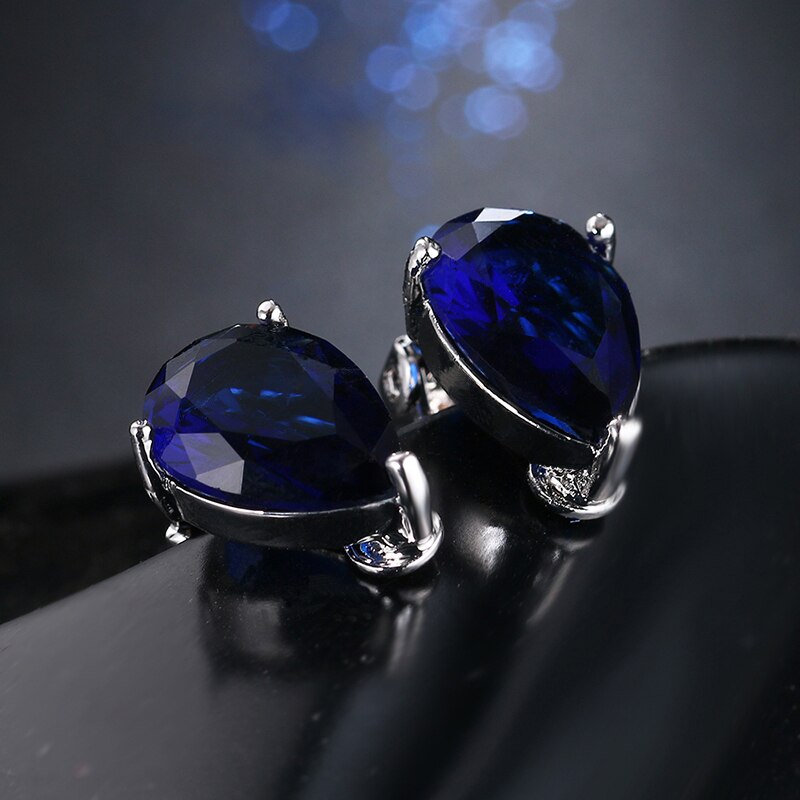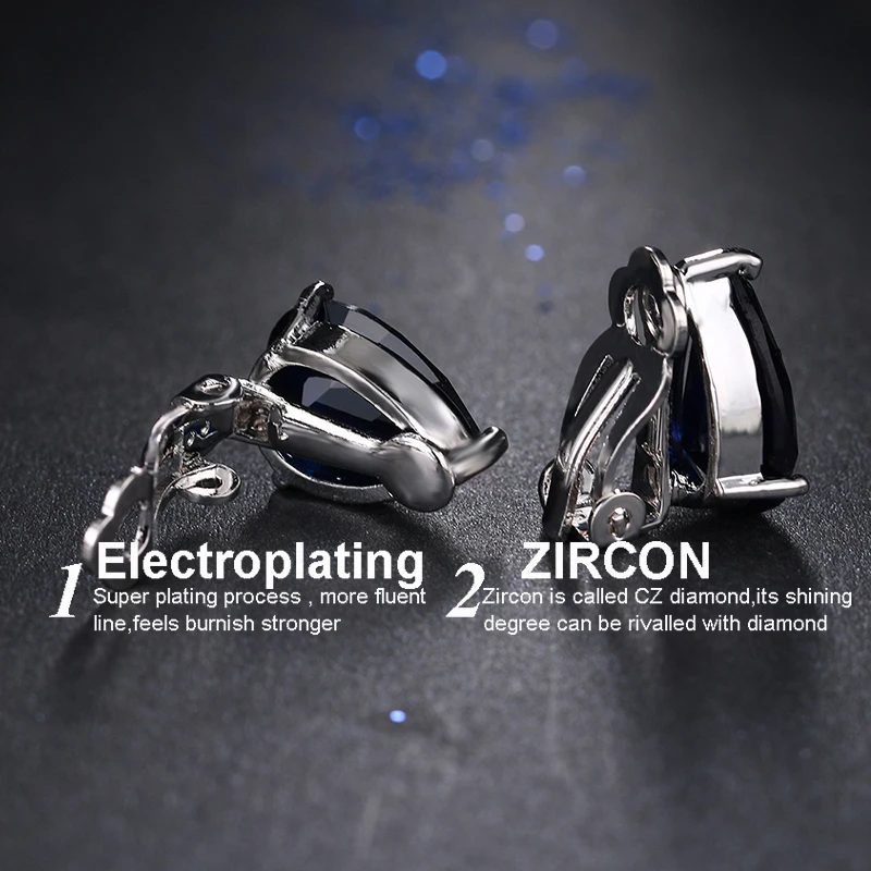 Fashion Water Drop Cubic Zirconia Clip Earrings With Elegant Blue Stone Earrings for Punk