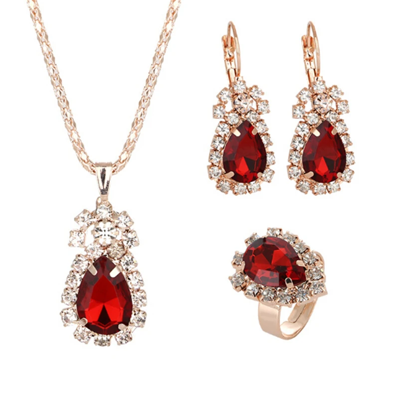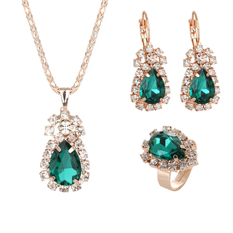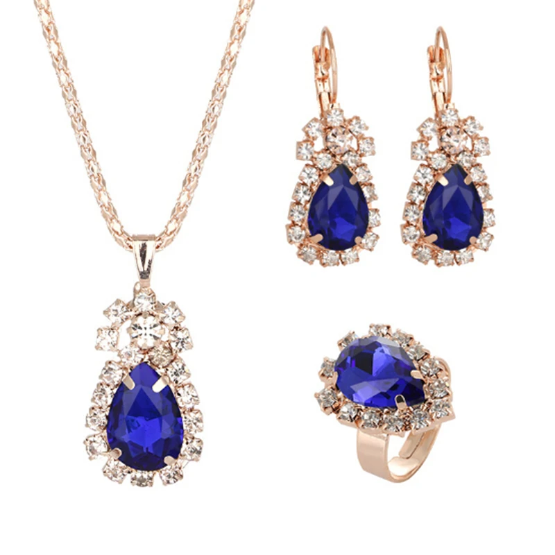 Fashion Waterdrop Shiny Rhinestones Necklace Ring Earrings Women Jewelry Set Elegant Luxury Design New Wedding Jewelry