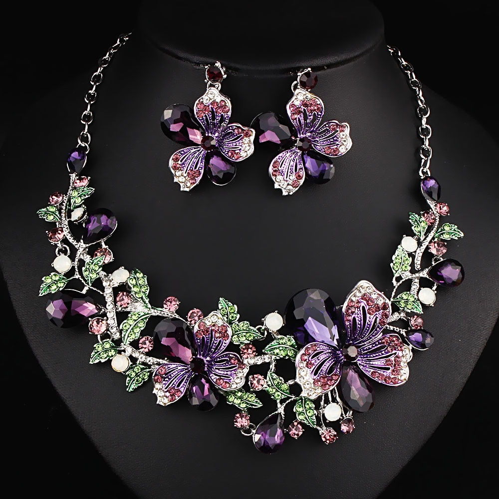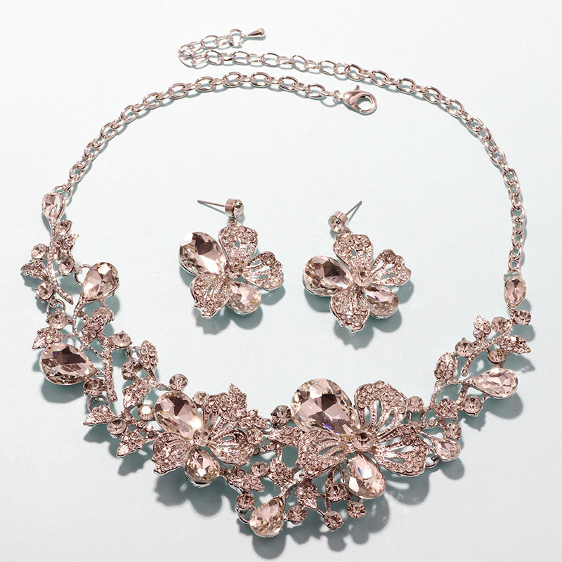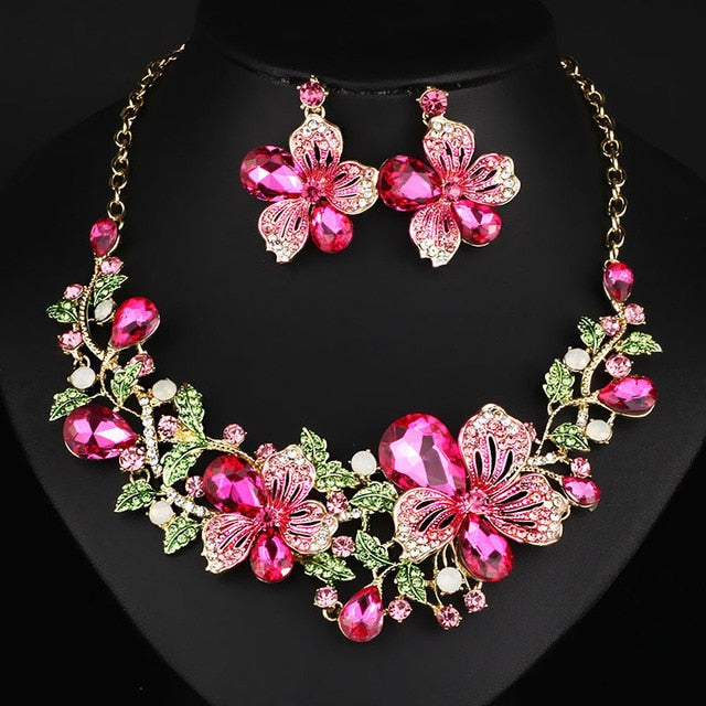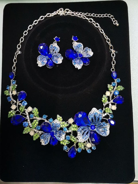 Fashion Wedding Jewelry Color Crystal Rhinestones Necklace Earrings set for Women Dubai Bridal Jewelry sets