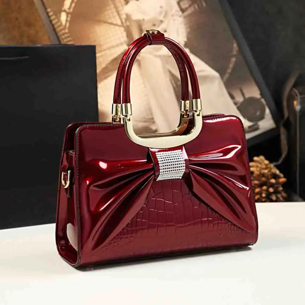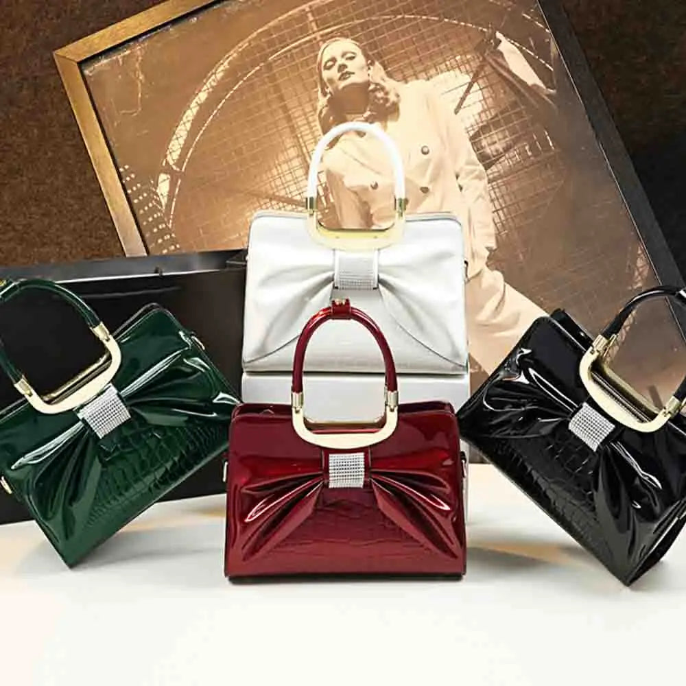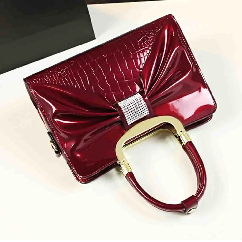 Fashion Women Handbag Luxury Patent Leather Bow with Diamonds High Quality Madam Shoulder Causal Tote Chic Ladies Clutch