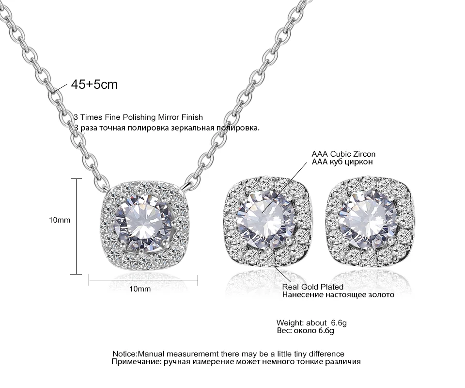 Hot Sale Fashion Yellow White Cz Zirconia Square Earrings & Necklace Set for Women Shinny Round Crystal Jewelry