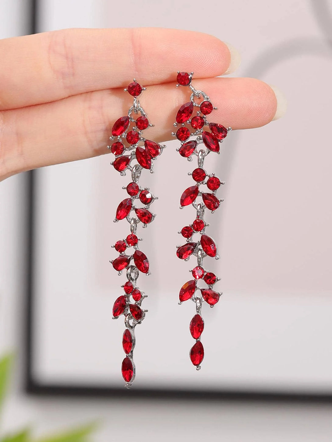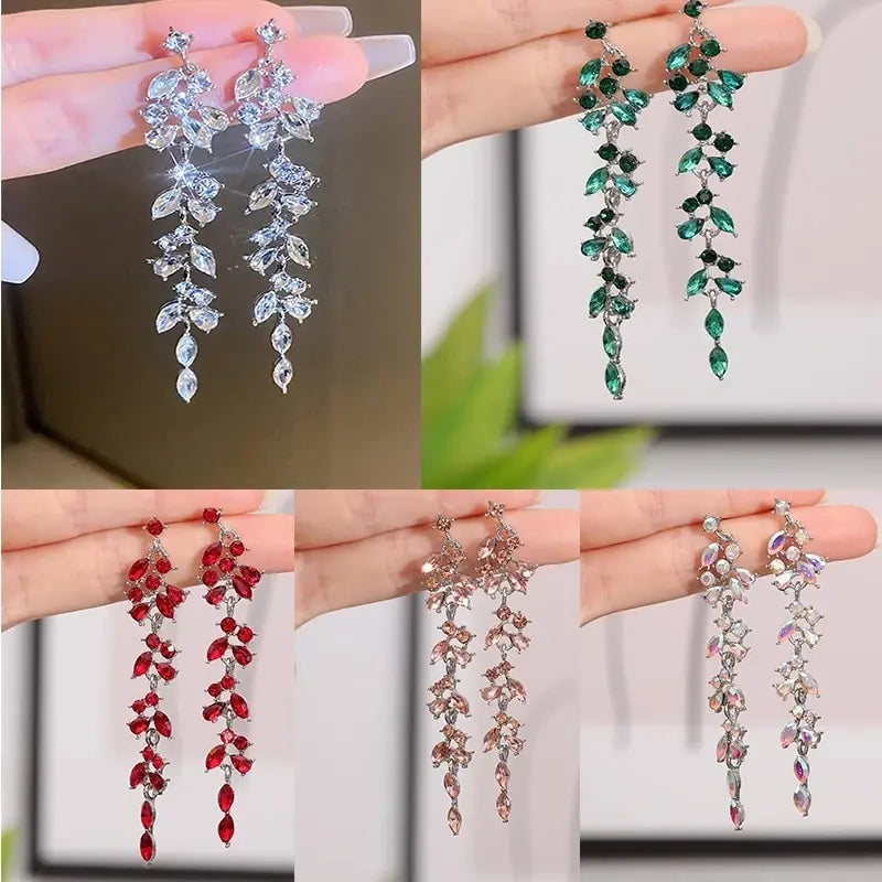 Fashionable Long Earrings with Diamond Leaves and Tassels Elegant Temperament Premium Earrings