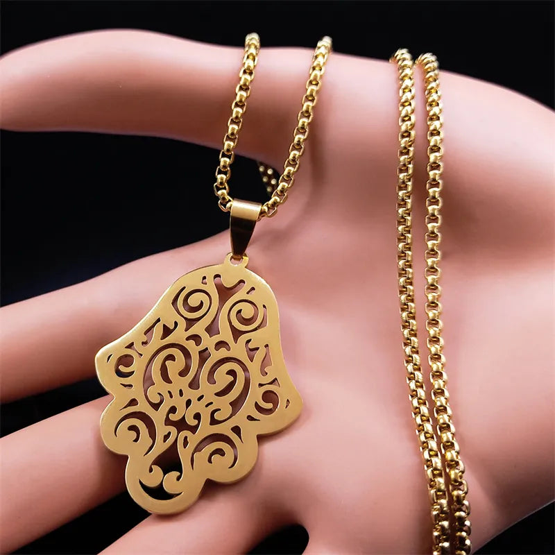 Fatima Hand Charm Necklace for Women/Men Stainless Steel Gold Color Arabic Hamsa Necklaces