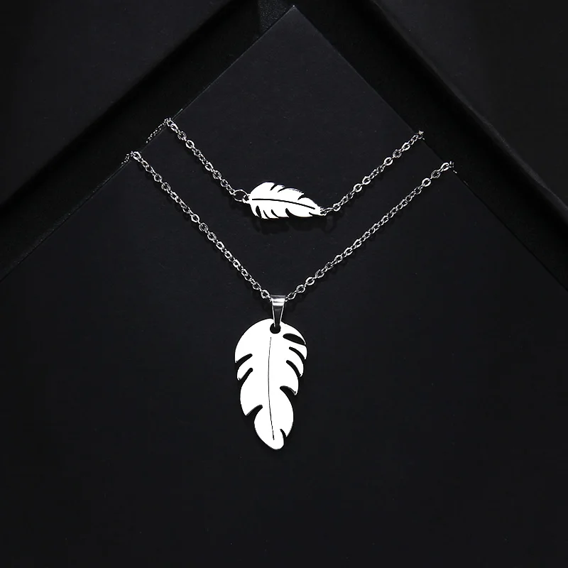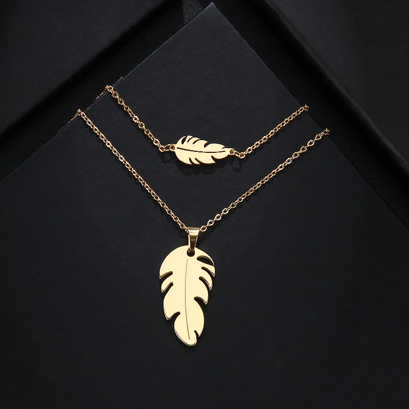 Stainless Steel Sets For Women Feather Shape Necklace Bracelet Earring Jewelry Lover's Engagement Jewelry